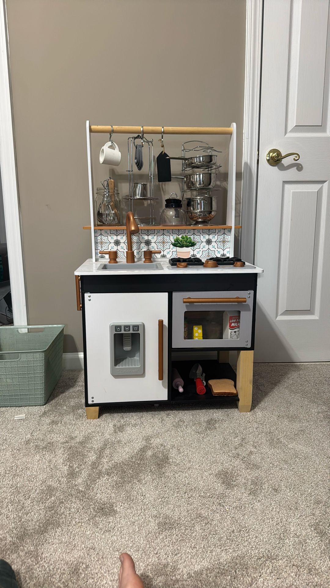 Play Microwave, Fridge, Stove and Sink with pots/pans, coffee maker, cooking utensils and play food