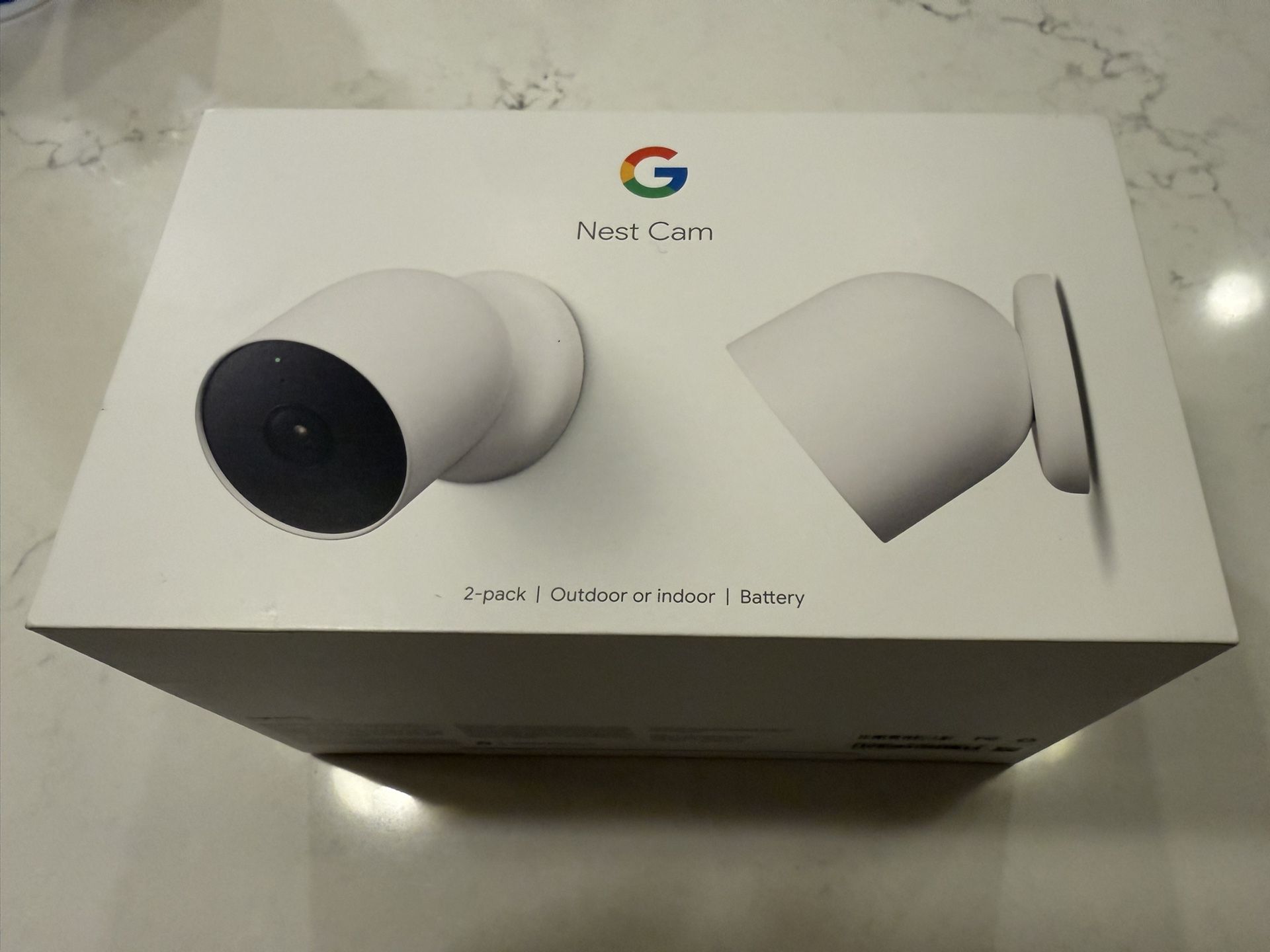 Google Nest Cam Outdoor or Indoor, Battery - 2nd Generation package of 2 cameras. Brand new never opened. Full retail price is $329.99