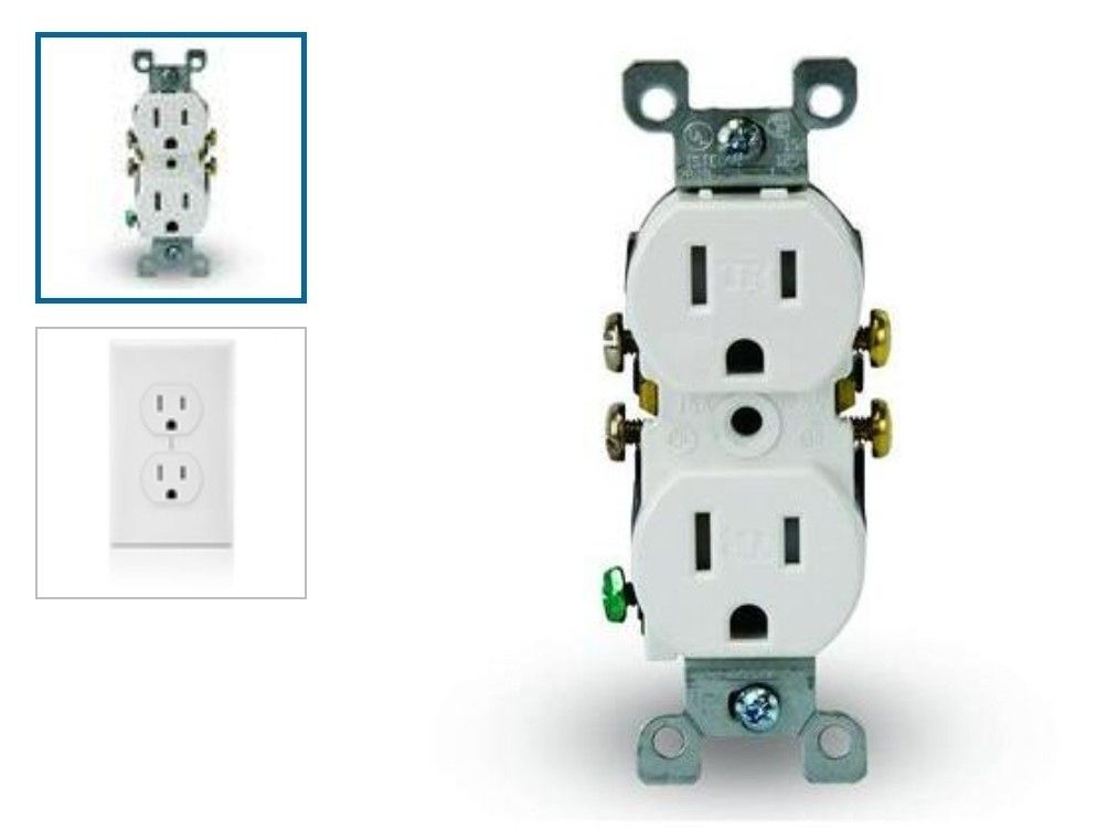 15 Amp Residential Grade Grounding Duplex Outlet, White