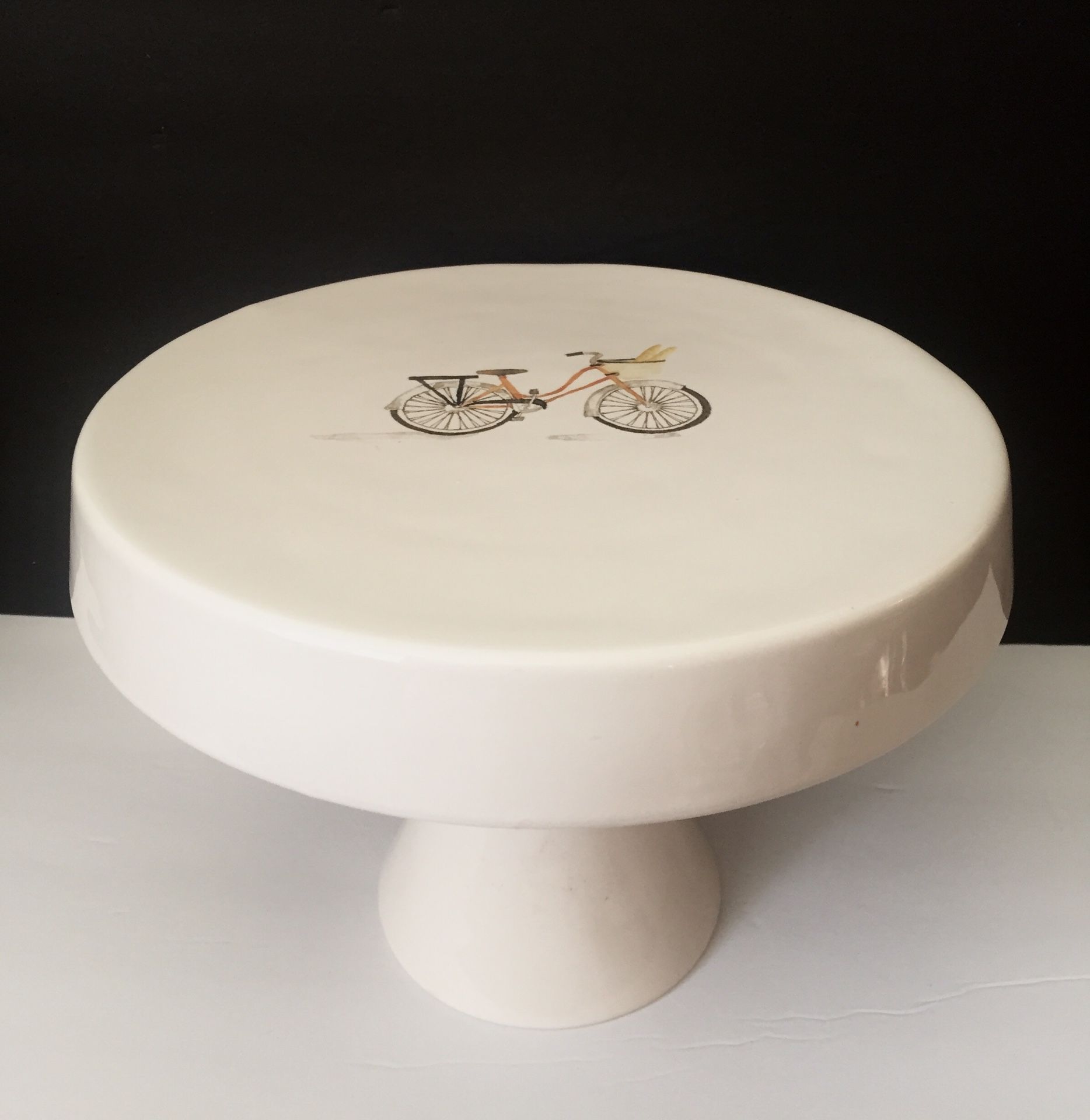 Rae Dunn Artisan Collection Ceramic Cake Stand with Bicycle Graphic