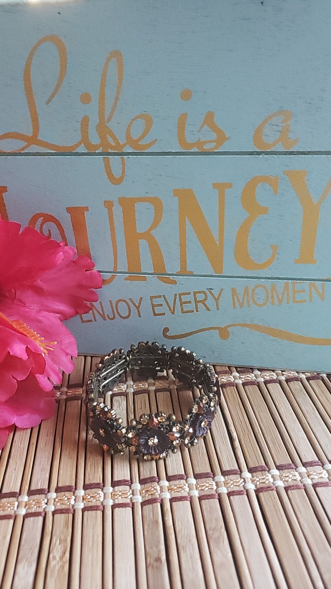 Stretchable rhinestone stretchable flowery bracelet..Handmade.