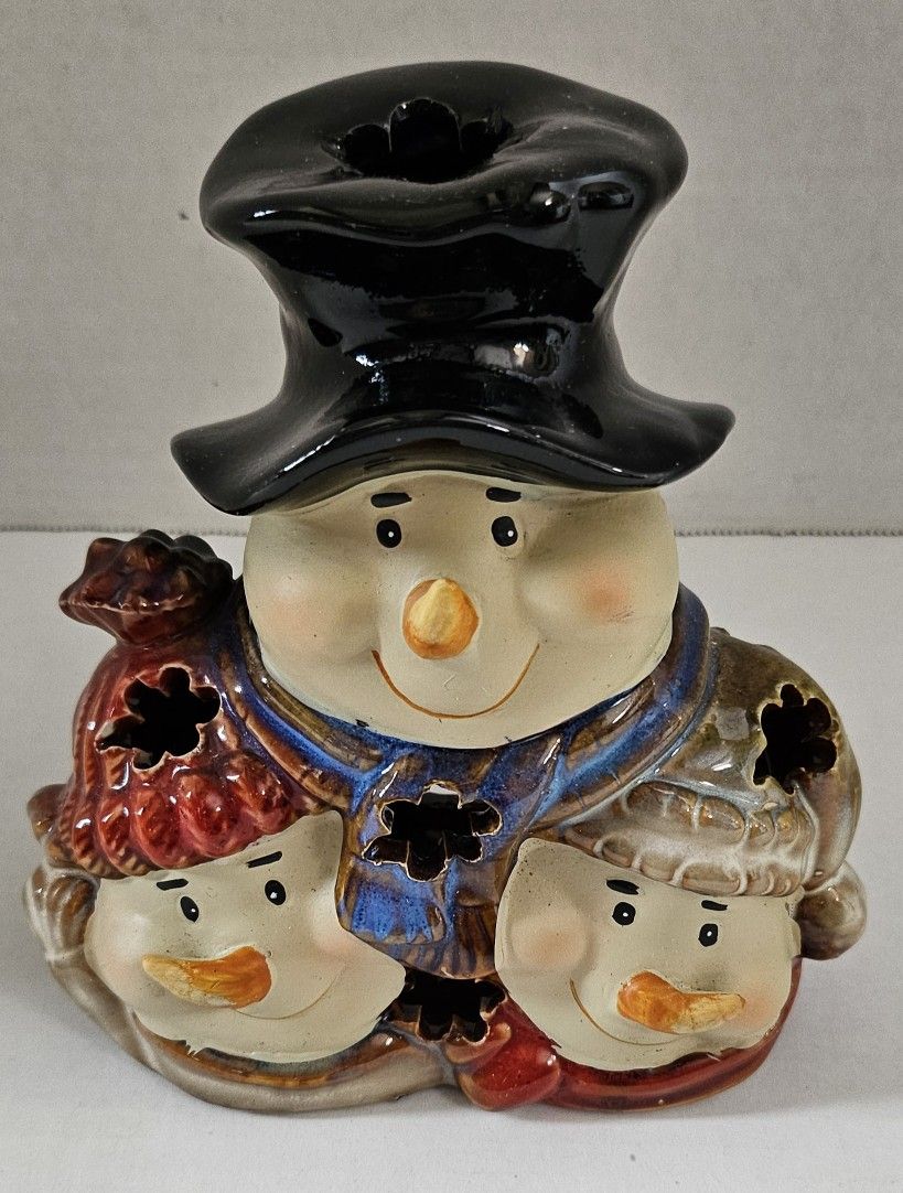 Kirkland Ceramic Potter's Garden Snowmen Tea Light Candle Holder