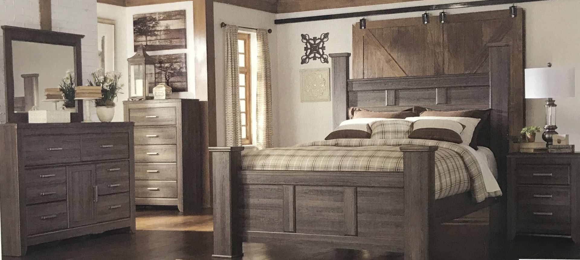 ****AMAZING DEAL**** Brand New Queen Bedroom Set for Only $1199 Set Includes Queen Bed, Nightstand, Dresser & Mirror (Mattress Sold Separately) Solid Wood Finished in Aged Brown Rough Sawn Replicated Oak Grain Pilaster Detailing Hardware Finished in Warm Pewter Vintage Casual Design Perfect way to create that cottage getaway within the comfort of your own home. Hablamos Español Come See Us @ Zoe’s Furniture In Richardson, Texas Only!!! B Two Five One. CS
