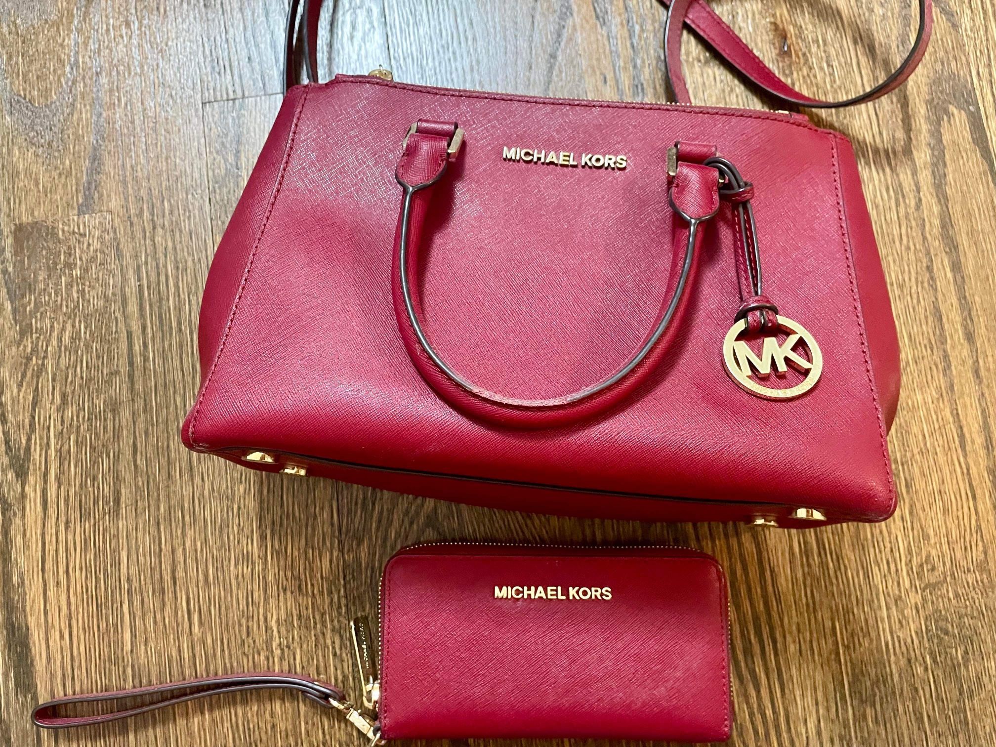 Authentic Michael Kors Sutton Medium Tote Bag + Matching Wallet Red Hand Woman