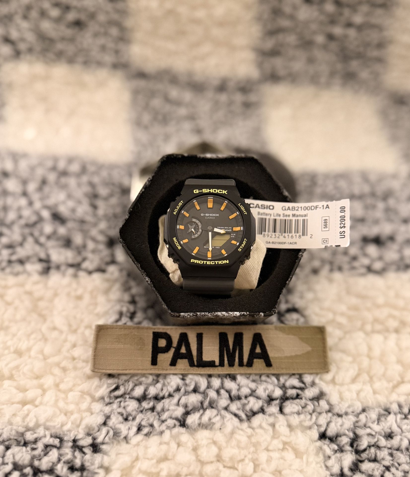 Brand new! Retail: $200 plus tax My price: $180 Case size (L× W× H) 48.5 × 45.4 × 11.9 mm Weight icon-question 52 g Case and bezel material Carbon / Bio-based resin Band Bio-based resin band Construction Shock Resistant Carbon Core Guard structure Water resistance 200-meter water resistance Time adjustment Bluetooth: Connects to a smartphone and automatically adjusts the time Power supply and battery life Tough Solar (Solar powered)