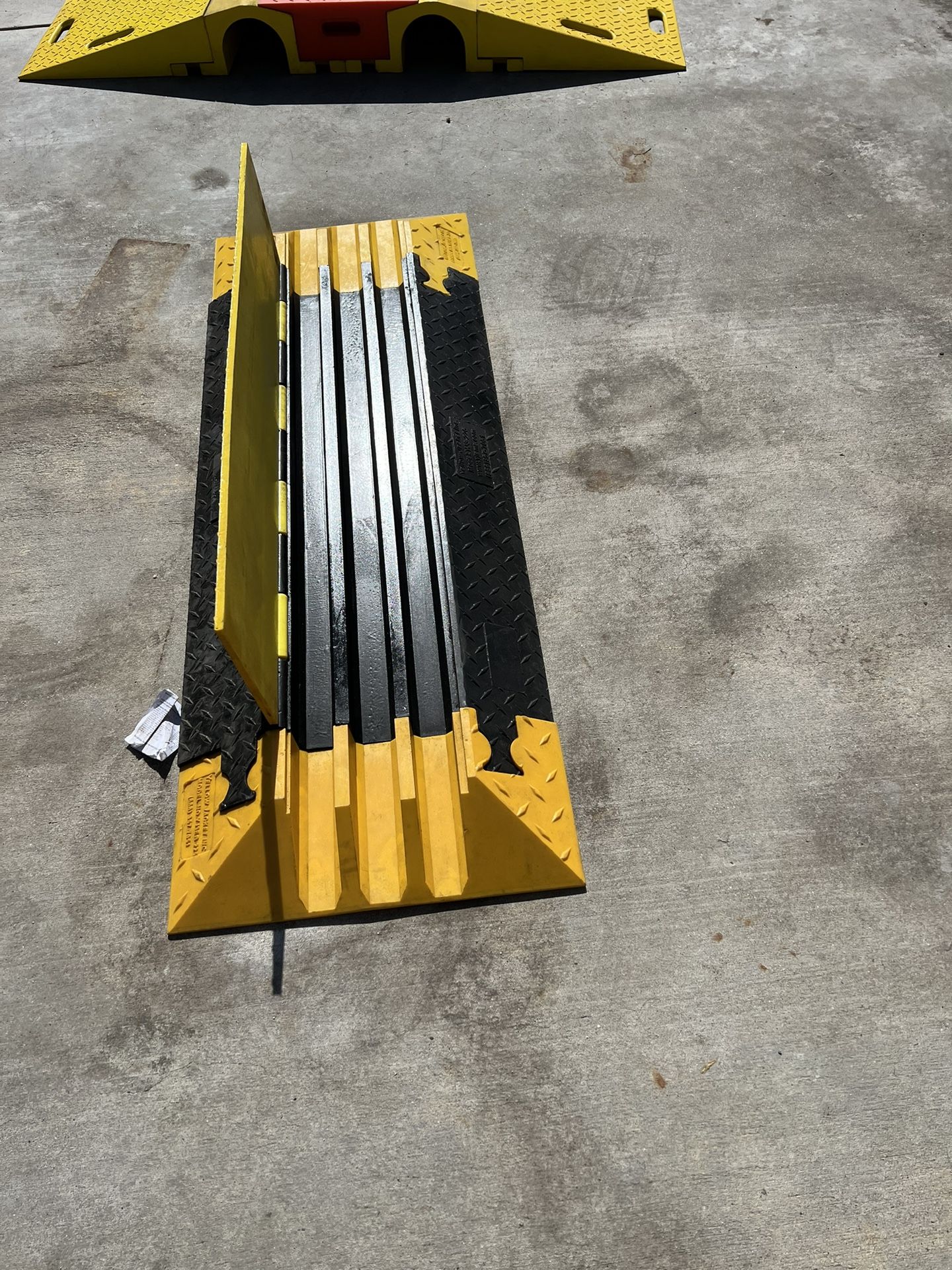 I have these sets of heavy duty rubber drive over ramp that you can feed electrical or anything you want to protect driving over on without damage.