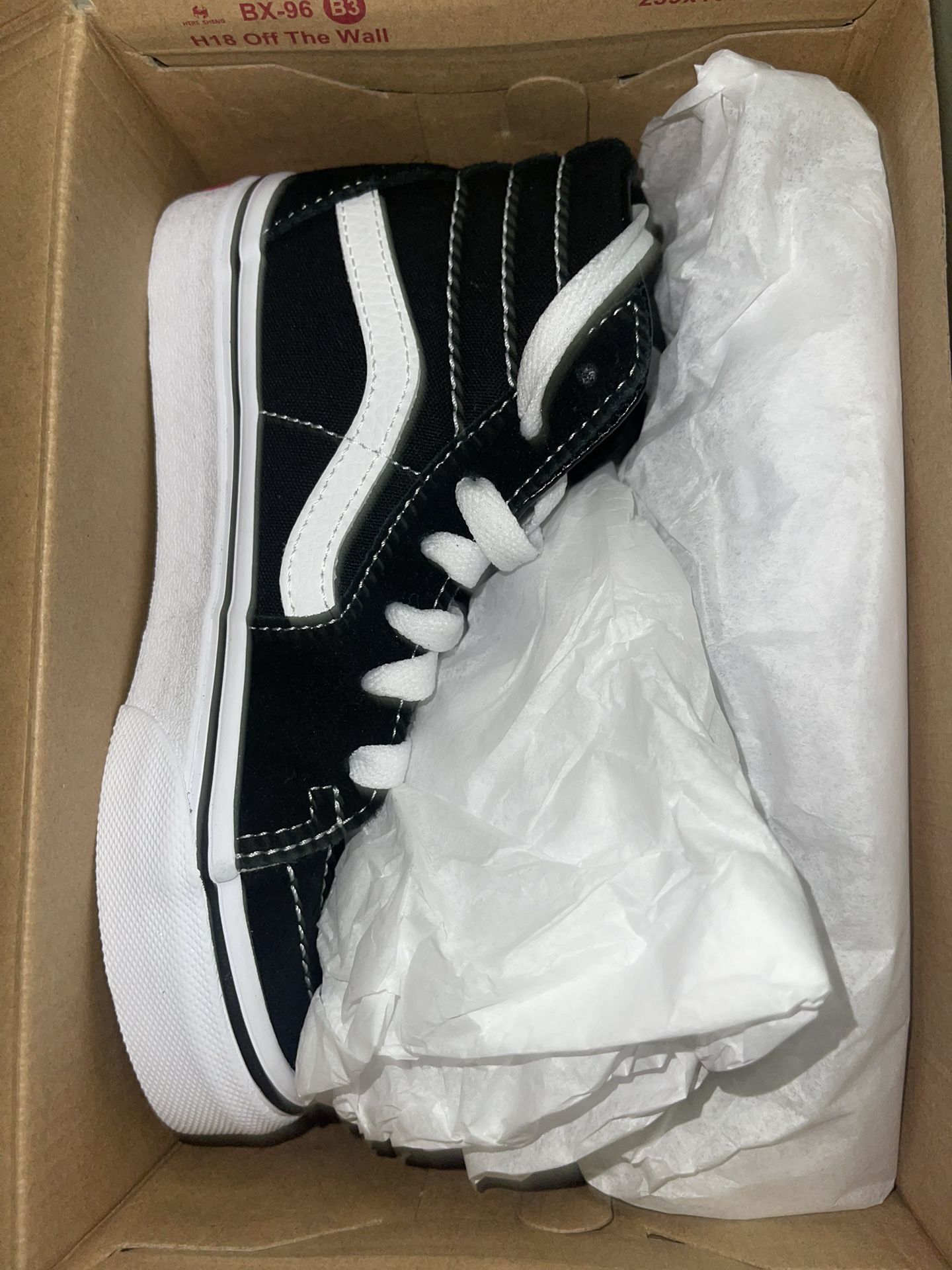 NEW NEW NEW NEW NEW NEVER WORN IN ORIGINAL BOX 30$ is a steal BLACK VANS SIZE 13 YOUTH SK8 HIGH TOP BLACK/WHITE RETAIL: 69.99 SALE: 30.00 No low ball: this is low and they are brand new. I ordered online and they are a size too small. Will sell fast!