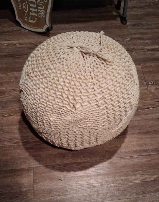 GDF Studio Ansel Knitted Cotton Pouf, Beige Ottoman