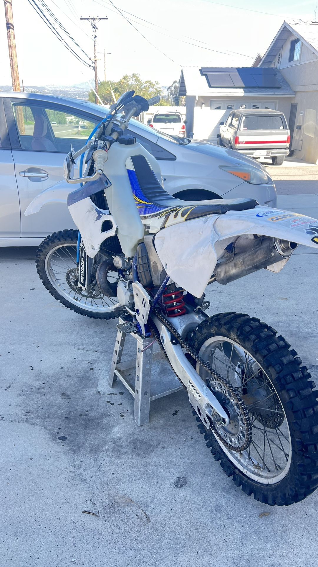 This bike runs amazing it has a lot of power 💪 It’s has a aftermarket parts - handle bars -3.8 gal gas tank -nibbi carb 38 mm pwk it has a fast flow for the power band so it gets more gas when more RPM -seat cover - bark busters -boysen reeds -comes with extra rim and tire good condition -has new peckcock  I have done a lot of work to the bike I redid the suspension new seals front and rear I cleaned the power valves all the carbon off, it has a green sticker I RE-GREASED ALL THE BEARINGS ALL THE PIVOT POINTS ETC The plastics are a little scuffed but what do you expect it’s a 30 year old bike,it can be replaced,low ball offers will be ignored LMK if you have any questions 1,800 OBO