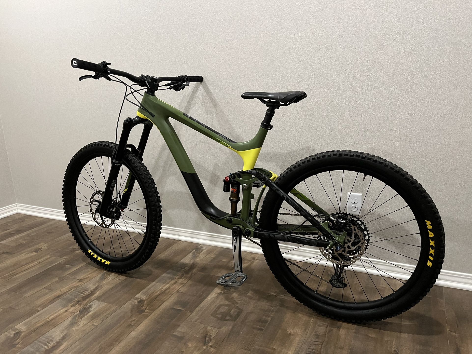 •••FIRM ON PRICE•••• Giant Reign GREEN. Testing the waters!! A couple scratches from actually using it!! Nothing crazy like jumps only used as a trail bike. No issues! Great condition ready to ride!! READ ALL BELOW GIANT REIGN Advanced PRO 1 (LARGE) •••READY TO RIDE•••••• -RARE BIKE 2015 Giant Reign Advanced PRO1 w/ Upgrades (LARGE) -Full Carbon composite frame w/ some areas carbon fiber wrapped. (See photos) -ODI grips -Upgraded Fox Float DPX2 Rear Shock -Upgraded Shimano SLX hydraulic Brakes system 11x1 -Upgraded LEV dropper post -27.5 Maxis Aggressive Tubeless tires (Great tread) -Adjustable 130mm-160mm Travel Rockshock Pike fork - Gears smooth as butter -Tuned a couple months ago Height 5”9- 6”2 Ready to Ride! Trek Alexrims / bmc / bontrager / cannondale / cervelo / colnago / corima / fsa / giant / hed / mavic / mercury / novatec / origin j8 / Planet X / reynolds / Scott / shimano / specialized / spinergy / sram / super team / trek / vision g/ wtb / zipp / aerospoke / hed 3 / fixie / fixed gear / road bike / time trial / vintage bike / bianchi / triathlon / time trial / fibra de carbon / carbon fiber wheels / carbon wheelset / kona / spinergy / Merlin / mountain bike / down hill bike / Trispoke / tri spoke / three spoke / carbon composite / 650c / Kona / Merlin / Litespeed / black market bicycles / Lynskey / kinesis / mason bokeh / Reilly / Ribble / Dolan / enigma escape / moots / ti bikes / ti frames j lo / pro flex Trek, Specialized, Giant, Santa Cruz, Cannondale, Yeti Cycles, Scott, Orbea, Canyon, Pivot Cycles, Norco, Marin, Kona, GT Bicycles, Cube, Rocky Mountain, Ibis Cycles, Mondraker, Nukeproof, Commencal.