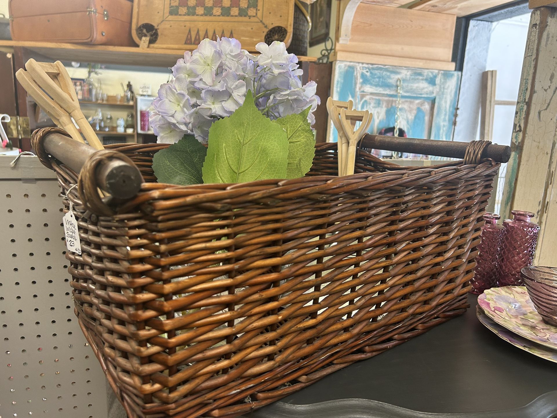 Vintage Wicker Basket w/ Wood Handles