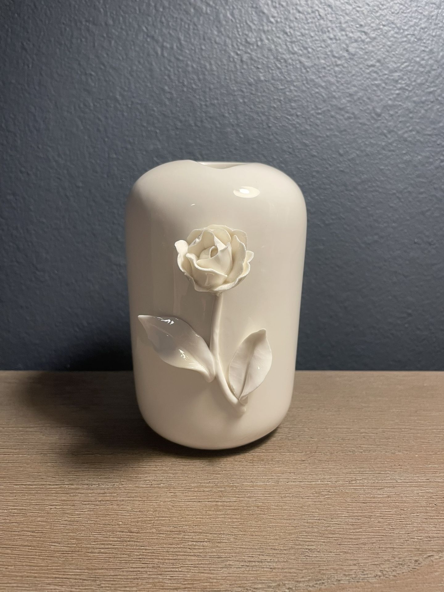 K&K Interiors 5.25 Inch White Ceramic Vase with Raised Flower