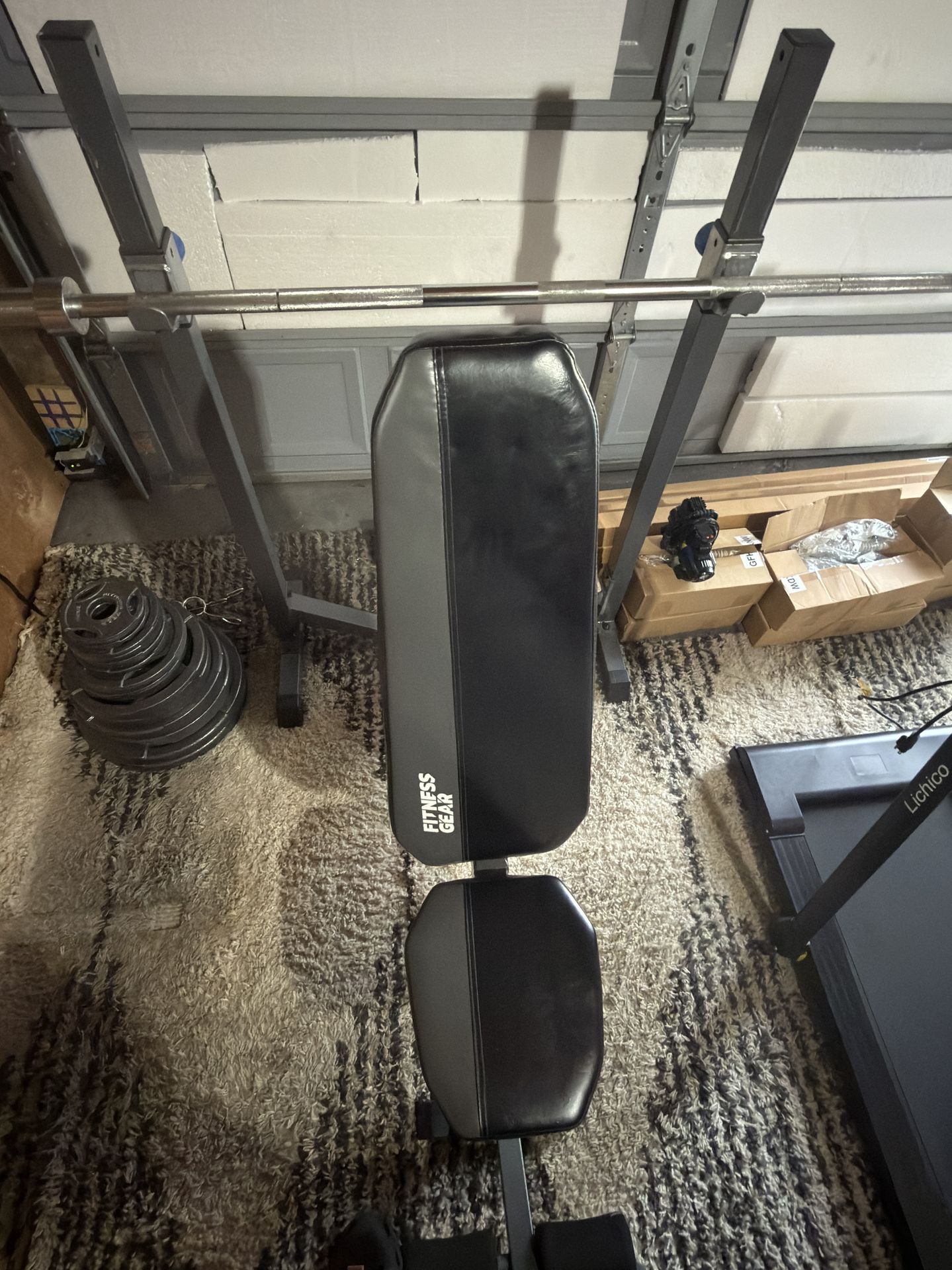 Fitness gear weight bench. The weights and bar sold Separately..