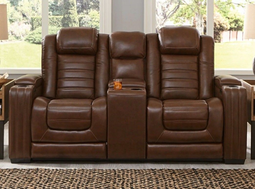 Backtrack Chocolate Power Reclining Loveseat with Console
