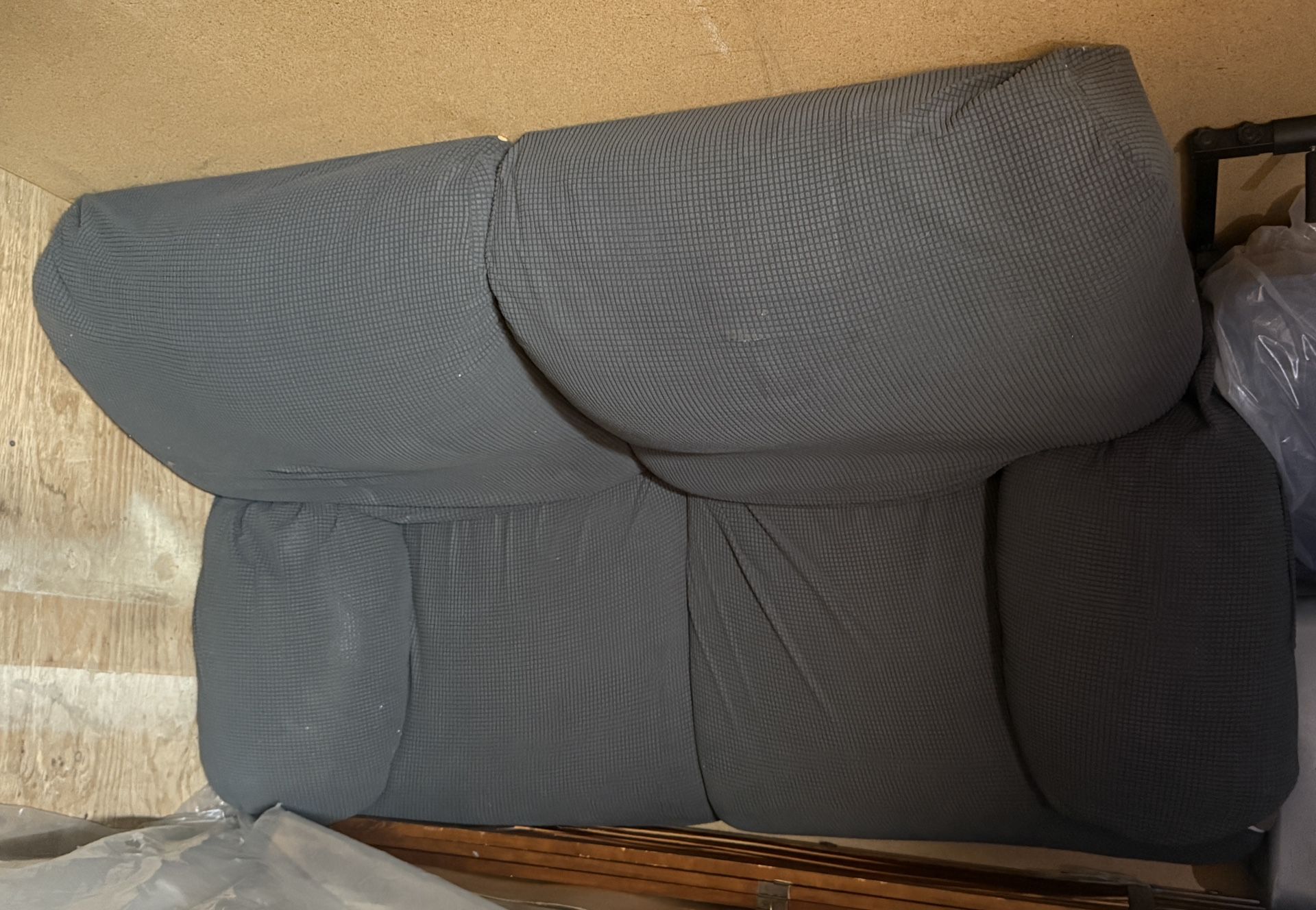 Lazyboy loveseat recliner in great condition. Brown suede. With grey seat protector and covers. No stains has been covered for protection