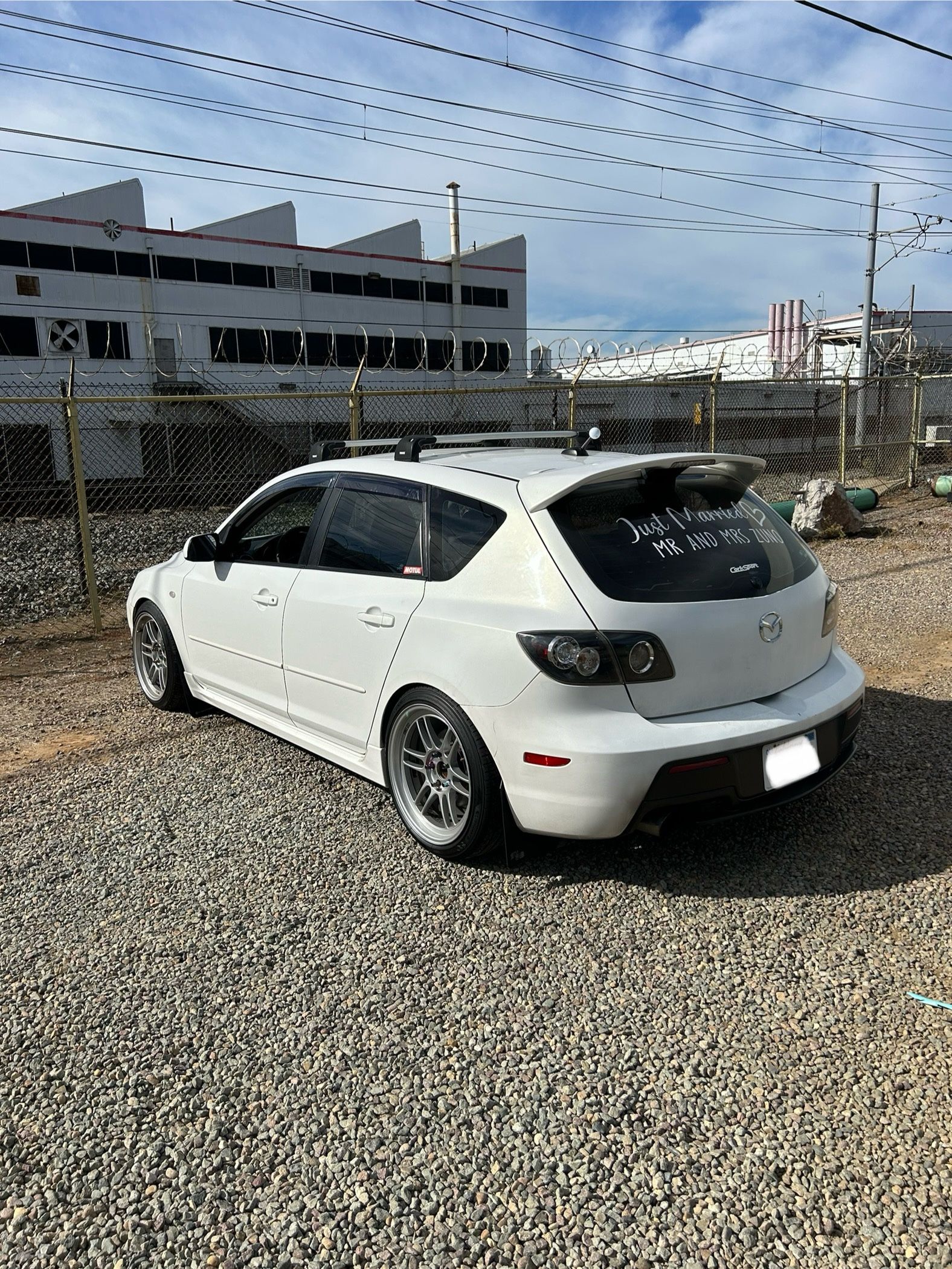2009 MazdaSpeed 3 GT 135,xxx Daily Driver miles will go up. Salvage title (front end accident) Previous owner tried to re paint the front end and did a horrible job so front end isn’t too pretty. interior 9/10 Exterior 7/10 AC blows cold & heater works. Rotella T6 Oil change every 5k miles. New radiator and hoses w/ coolant flush Transmission fluid changed NGK 6510 spark plugs Oem Mazda coil packs New MAF sensor Boss double din stereo with apple car play Corksport transmission motor mount Corksport passenger motor mount Cobb rear motor mount Cobb catted down pipe Cobb cat back exhaust HKS blow off valve Autotech HPFP internals VVT replaced H&R lowering springs. Enkei RPF1s (18x9 +35) 2 rear new tires 2 front tires newish plenty of life still on them Tags just paid October 2024 Cons: needs smog Thermostat paint isn’t the best on the car Suspension work Passenger headlight isn’t working; previous owner told me bulb went out so I just ended up getting new ballast and ignitor with new bulbs but I think there’s a short somewhere. Turbo is fine goes to boost fine but there’s a loss of power when hitting 3k rpm’s hear a rattle not sure what it is. Going to compression check and update this in the future.