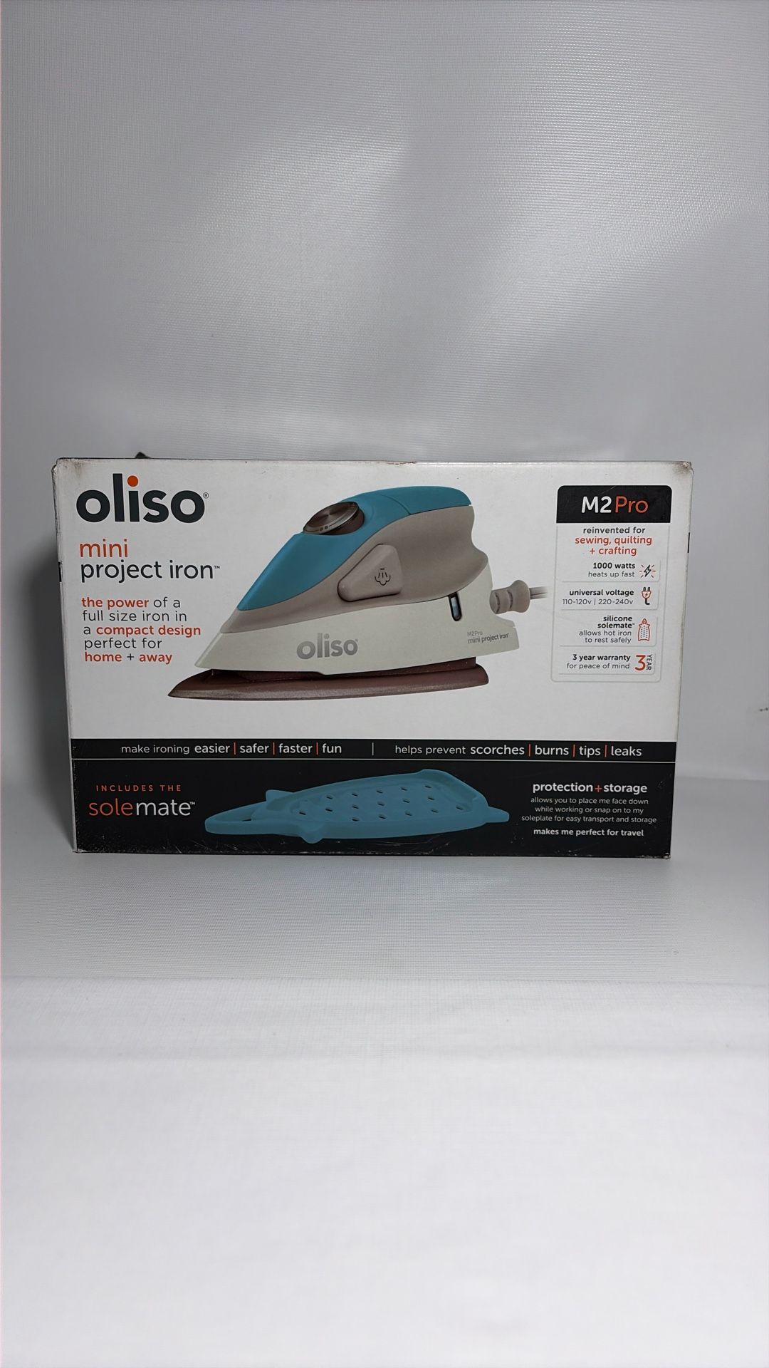 Oliso M2 Mini Project Steam Iron & Solemate Turquoise Open Box. New item. Open box. Never used.