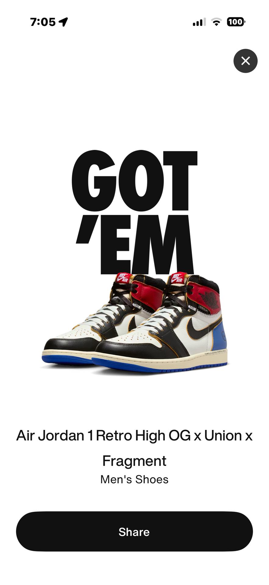 Jordan 1 High OG SP Fragment x Union LA Varsity Red Sport Royal Size 10M/11.5W DS/OG All $300 OBO Purchased directly from SNKRS app
