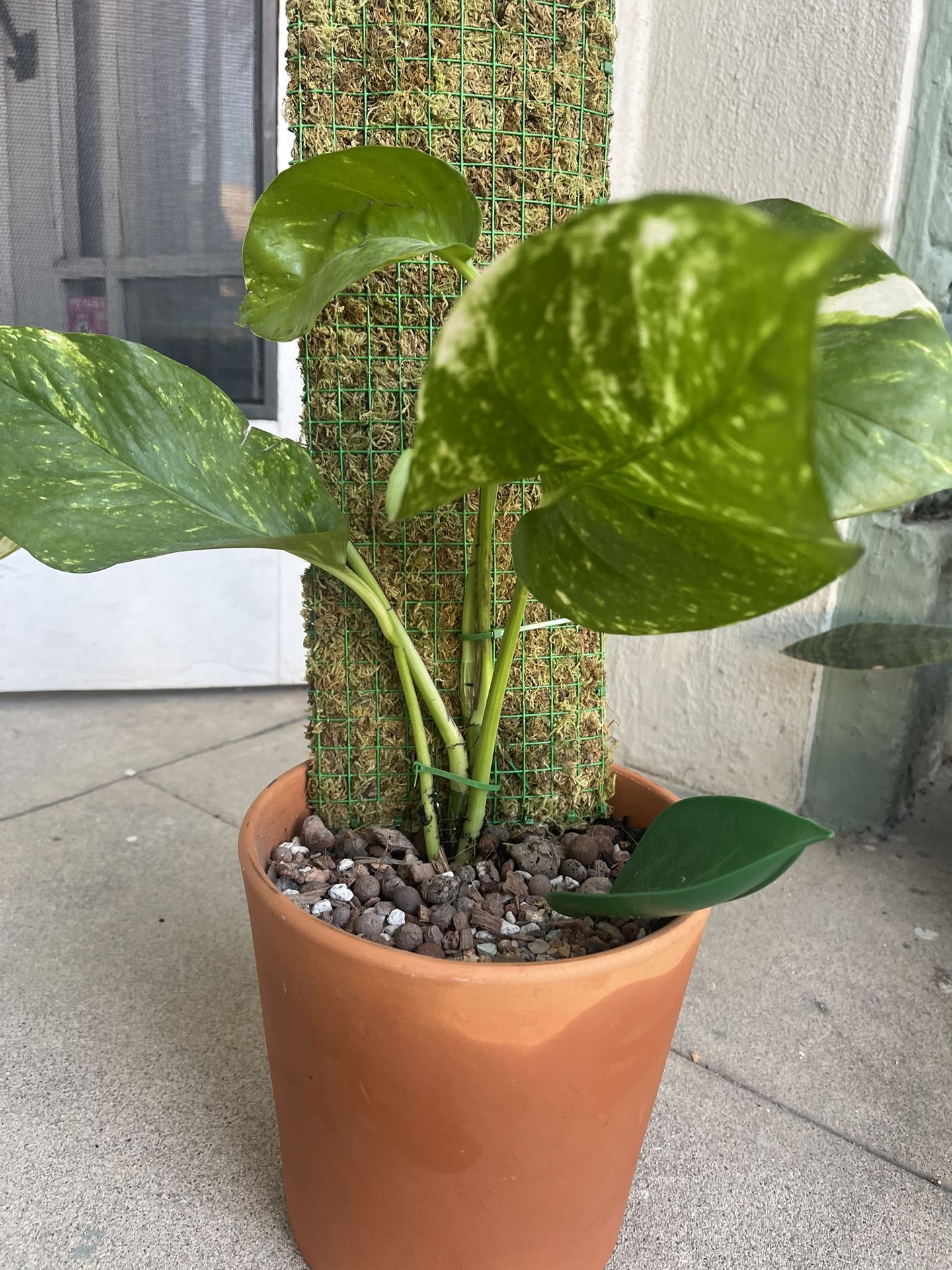 Hawaiian Pothos plants with multiple nodes and leaves. Two plants newly repotted with supplements to help them grow. Mother plant ($700 plant) pictured at the end