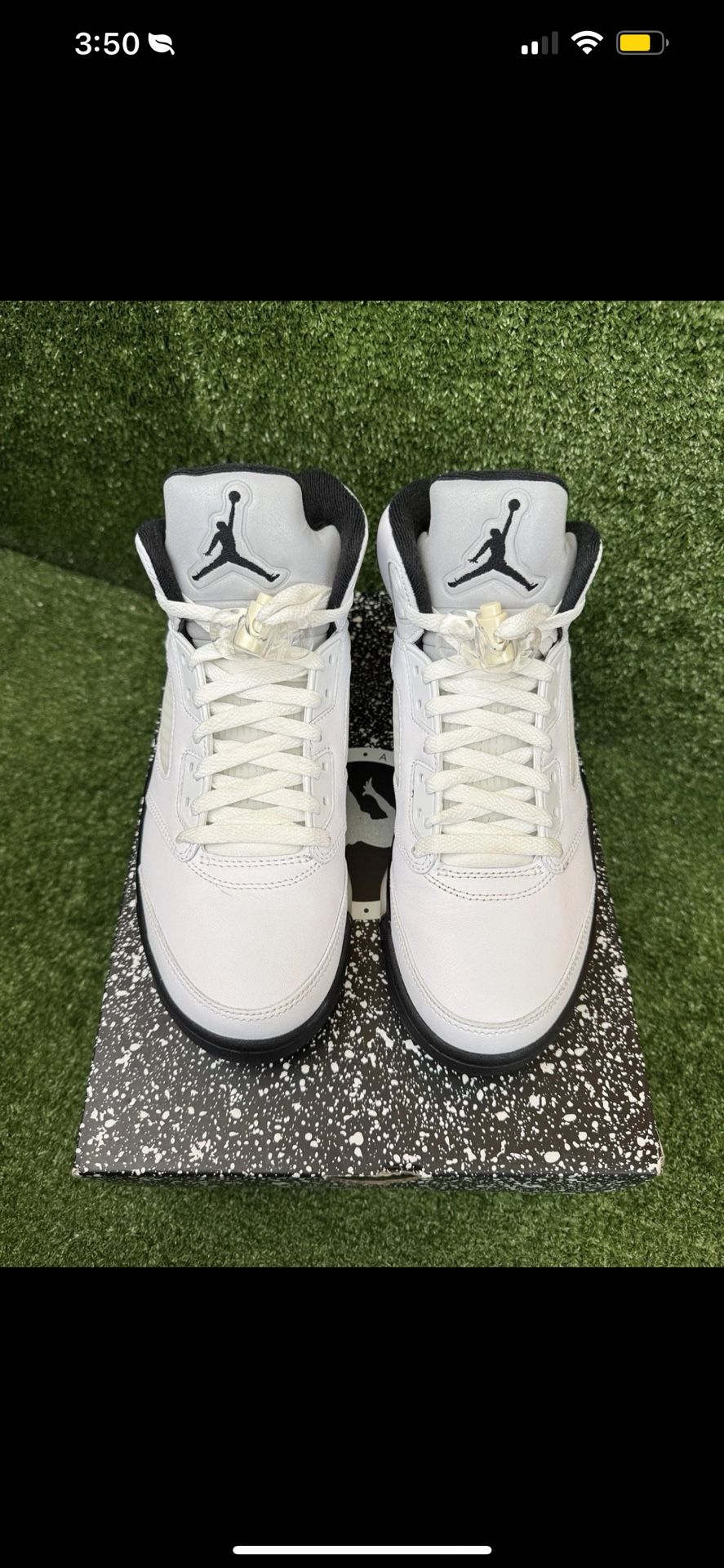 Mens 8.5- Air Jordan 5 Retro White Black Metallic