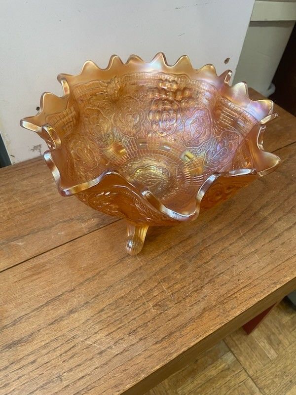 Antique Large Carnival Glass Ruffle Bowl