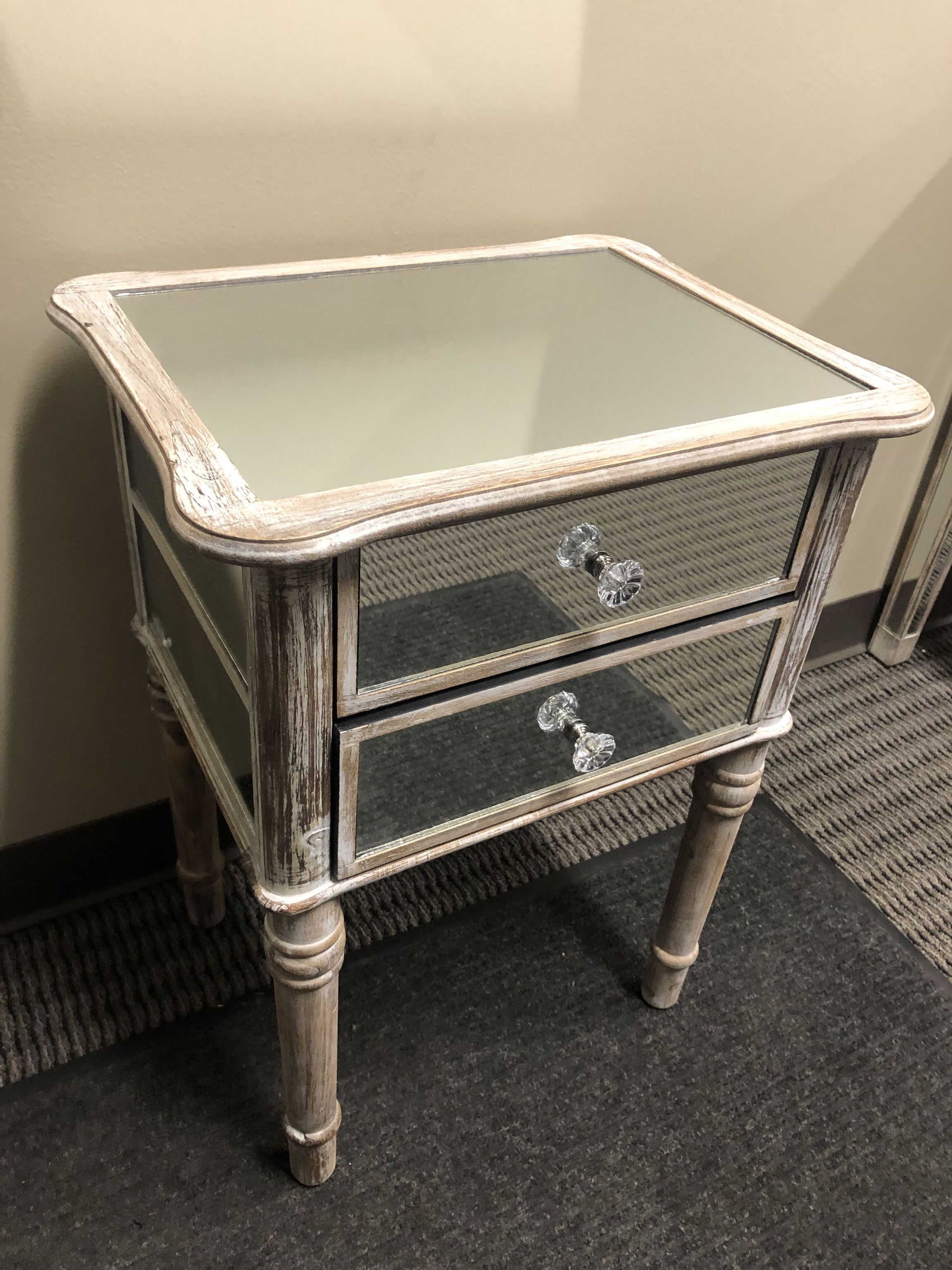Weathered White. Brand New, never used. Online is selling for $250+taxes. Now $75. I want a bigger size one in my bedroom. Dimensions: 18"L x 14"W x 24"H