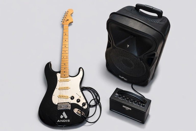 Electric Guitar Bundle β Andis Strat-Style Guitar + Boss Amplifier + BeFree Speaker