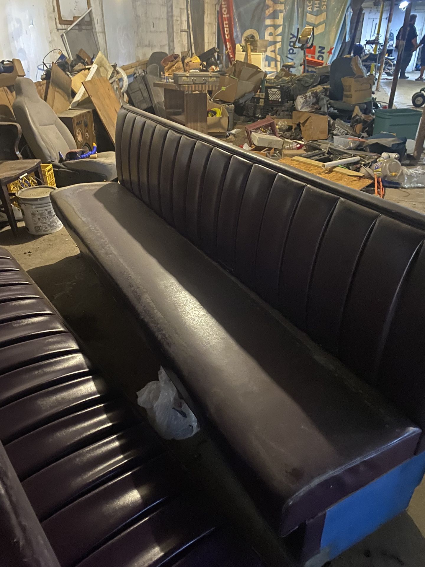 2 matching 8’ restaurant banquets (booths). They are in very good condition.. can be put side-by-side for 16 foot wall banquet or each other for an 8 foot booth seating. Must be able to pick up..