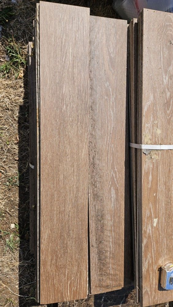 I have 3 types of flooring for free. It's a bundled deal, so you take/haul everything. I believe they're all porcelain and/or ceramic, but im not certain. These have been sitting on our porch, but other than needing a bit cleaning/dusting, they're in great shape. Dimensions/count: Marble tiles - 18x18 (14) Whitish tiles - 12x12 (56) Wood color/grain planks - 31 3/8x5 1/4 (112)