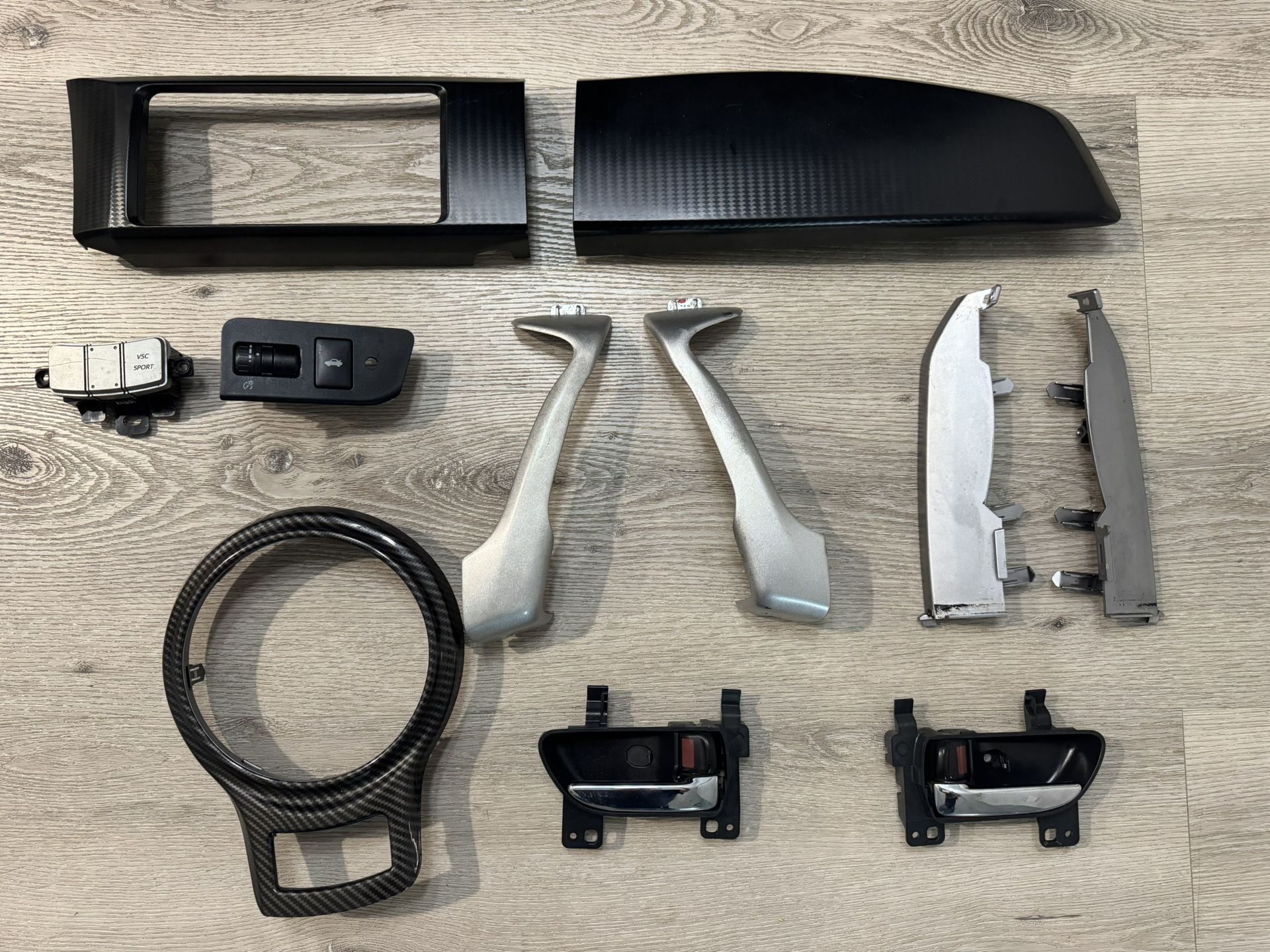-Listing is for all shown parts but can sell individually (price isn’t set) -Everything is not cracked, some just scratched -Trunk release trim had a hole drilled in by previous owner but doesn’t stop functionality -Shifter trim has a overlay on it -Pick Up in 77063