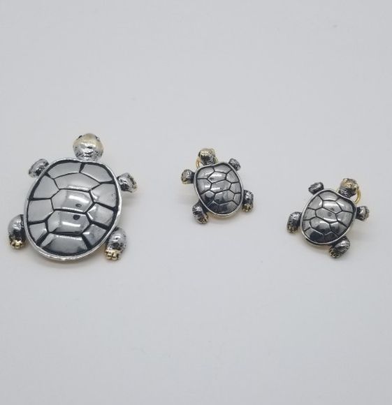 With this purchase you get a turtle brooch/pin it has a loop for easy attachment to a necklace you may already own. With this you also get a pair of matching earrings. I have included the measurements in both the pin and earrings for a better idea. Feel free to make me an offer or if you have any questions please let me know. MOUBx3BBgB