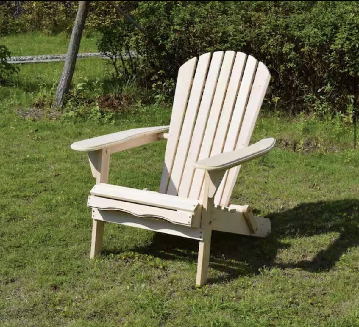 Unfinished Wood Adirondack Chair Kit. ae have 6 chairs each for $40 Dimensions Assembled Height (in.) 35.24 in Assembled Width (in.) 28.35 in Chair