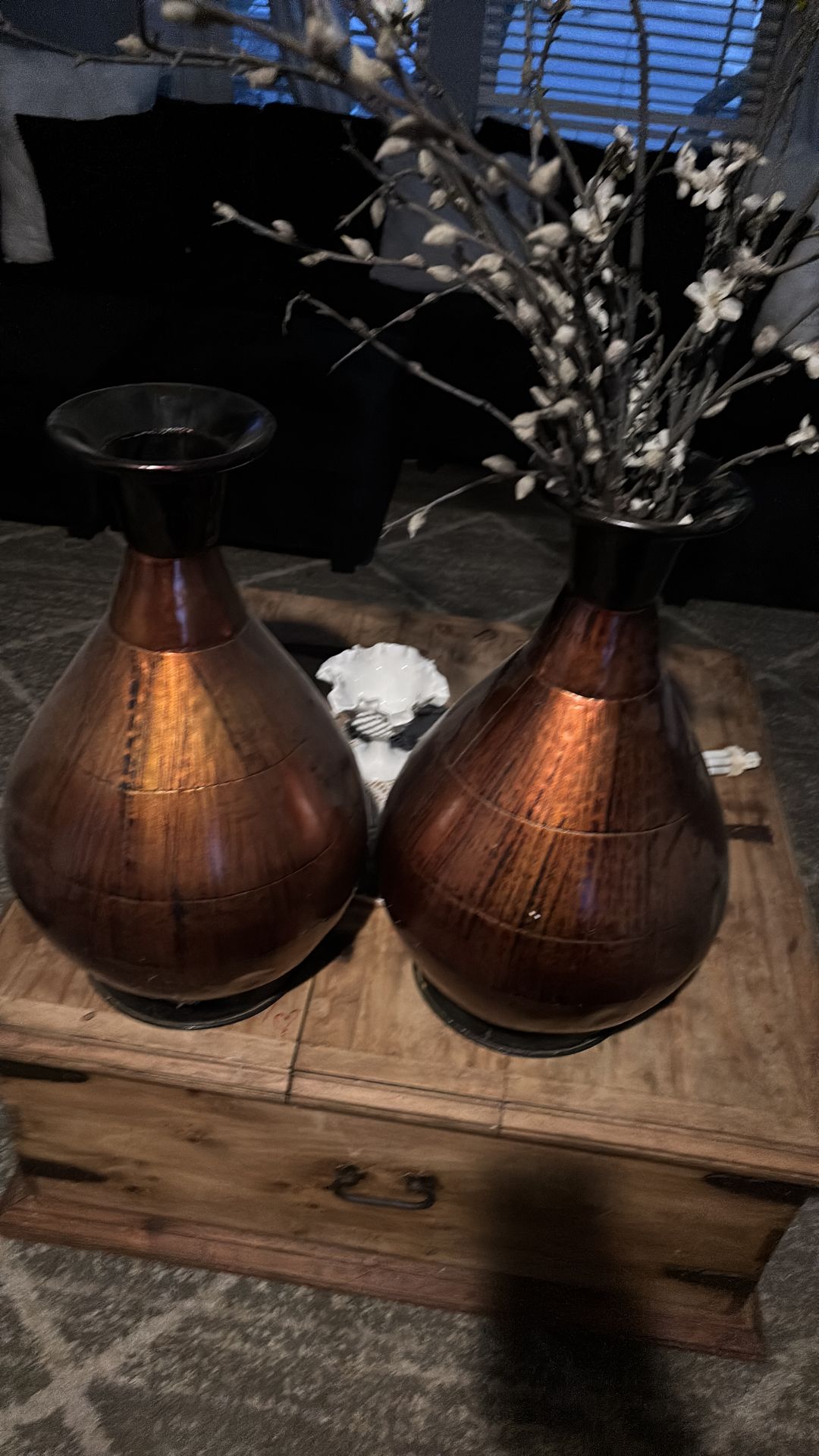 These decorative vases feature a bulbous, wood-grain patterned body with a narrow neck and wide opening.
