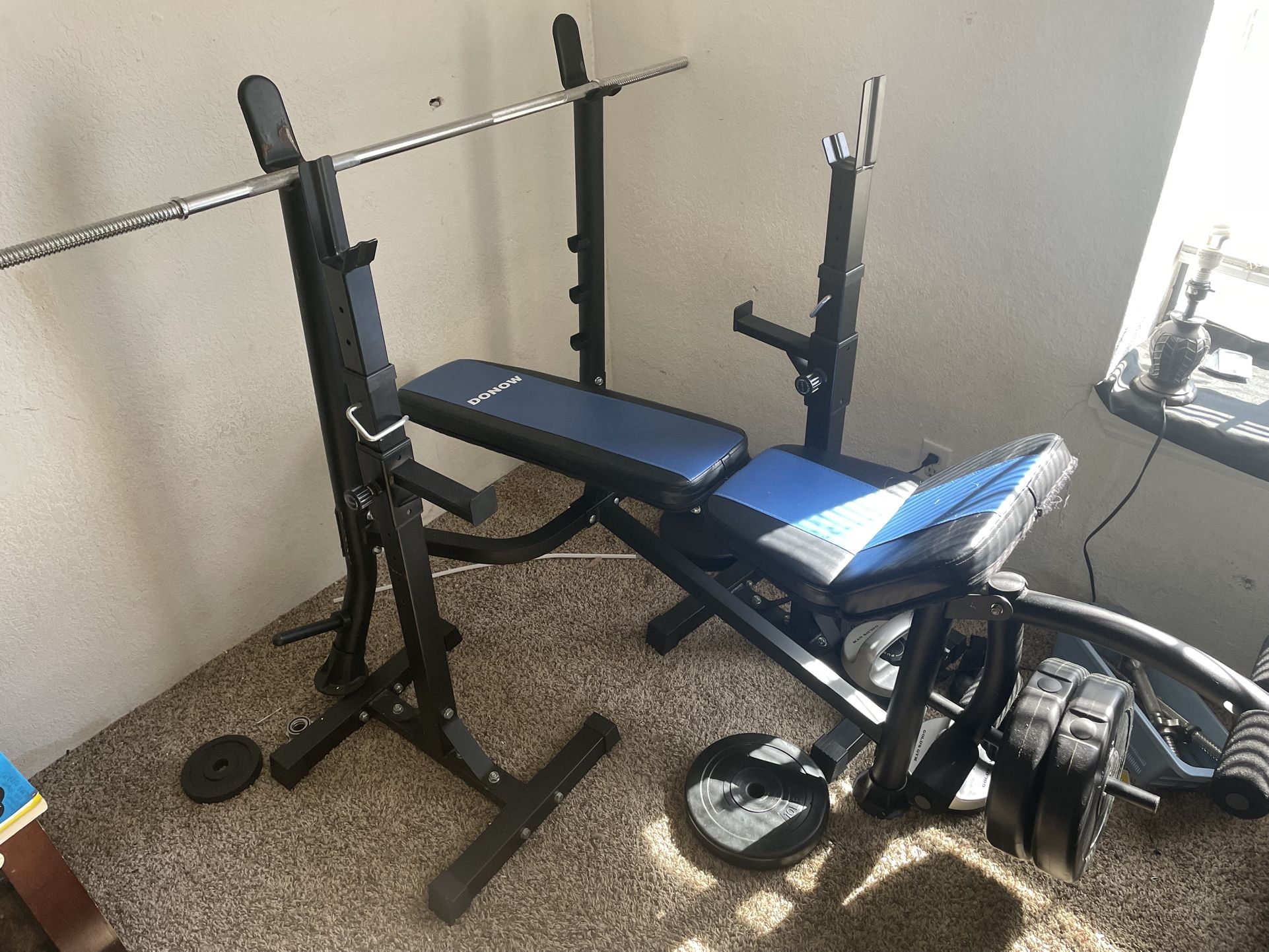 Heavy bag w stand (small hole) $150 Weight bench $150 Both $240 pick up or drop off option.
