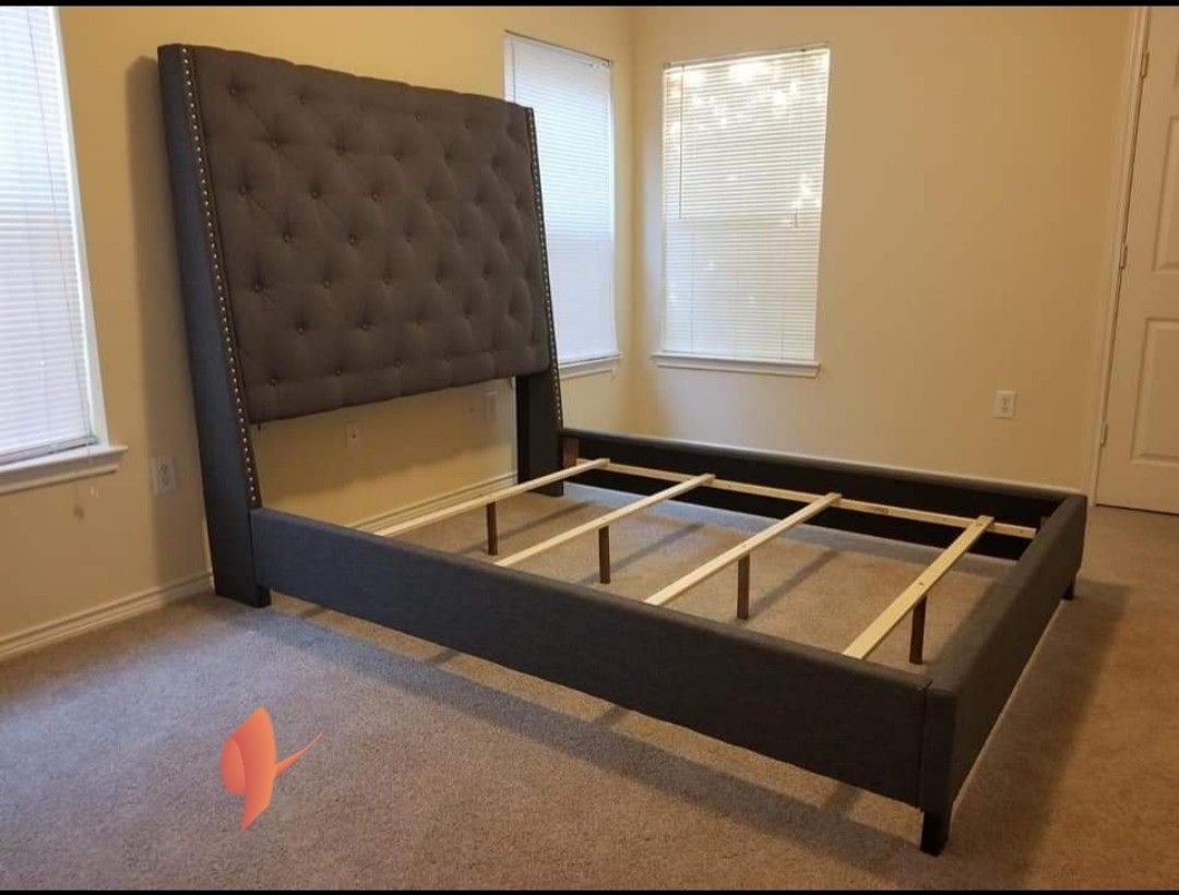 Brand New// Gray Queen Bed Frame Cama// Mattress Sold Separately