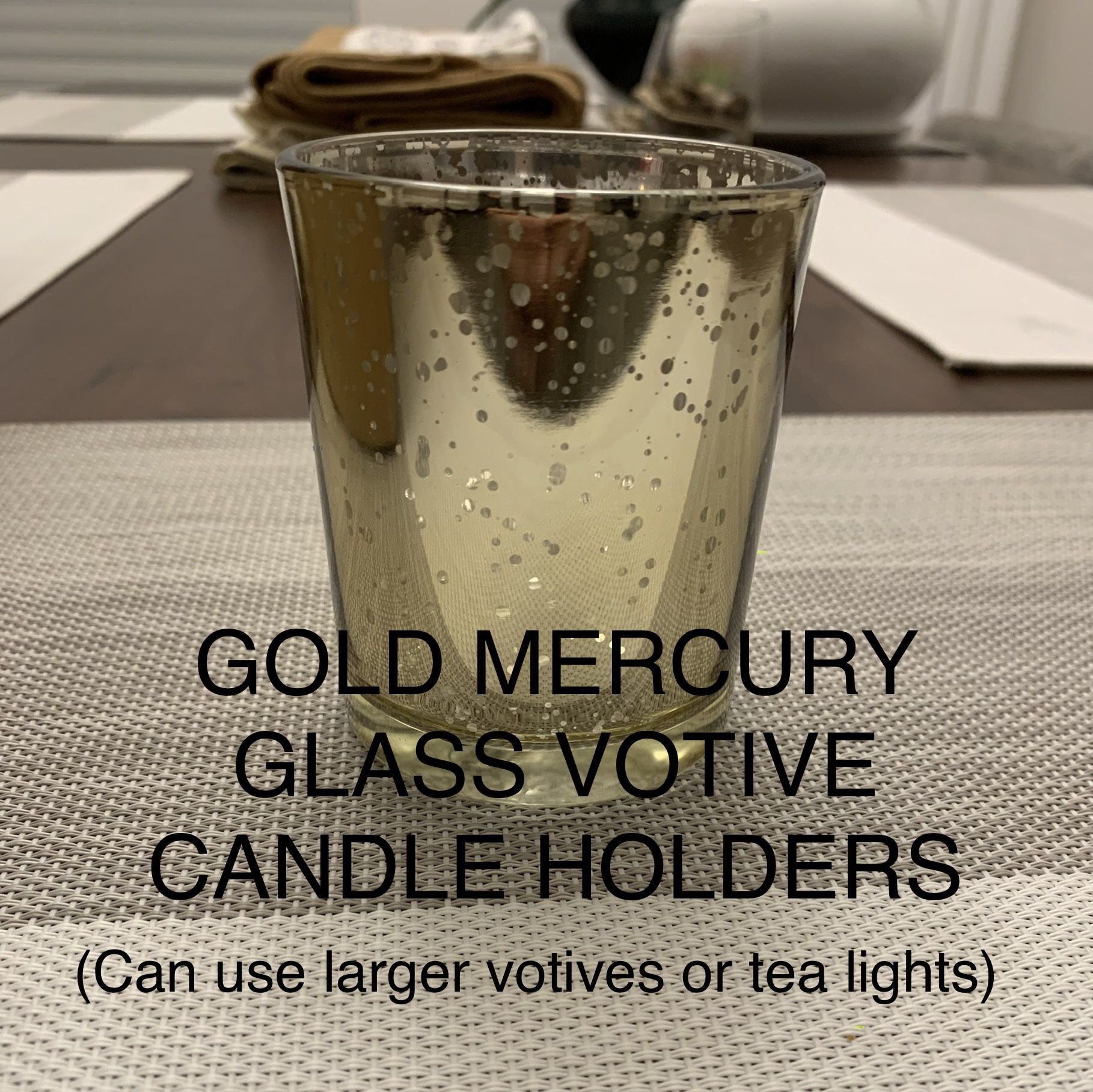 GOLD MERCURY GLASS VOTIVE HOLDERS QTY 36 total These were used once for a wedding. No wax inside, like new!!! ππΌ Pickup in Oakland/Winter Garden area -or- Shipping is available, buyer pays all shipping costs.