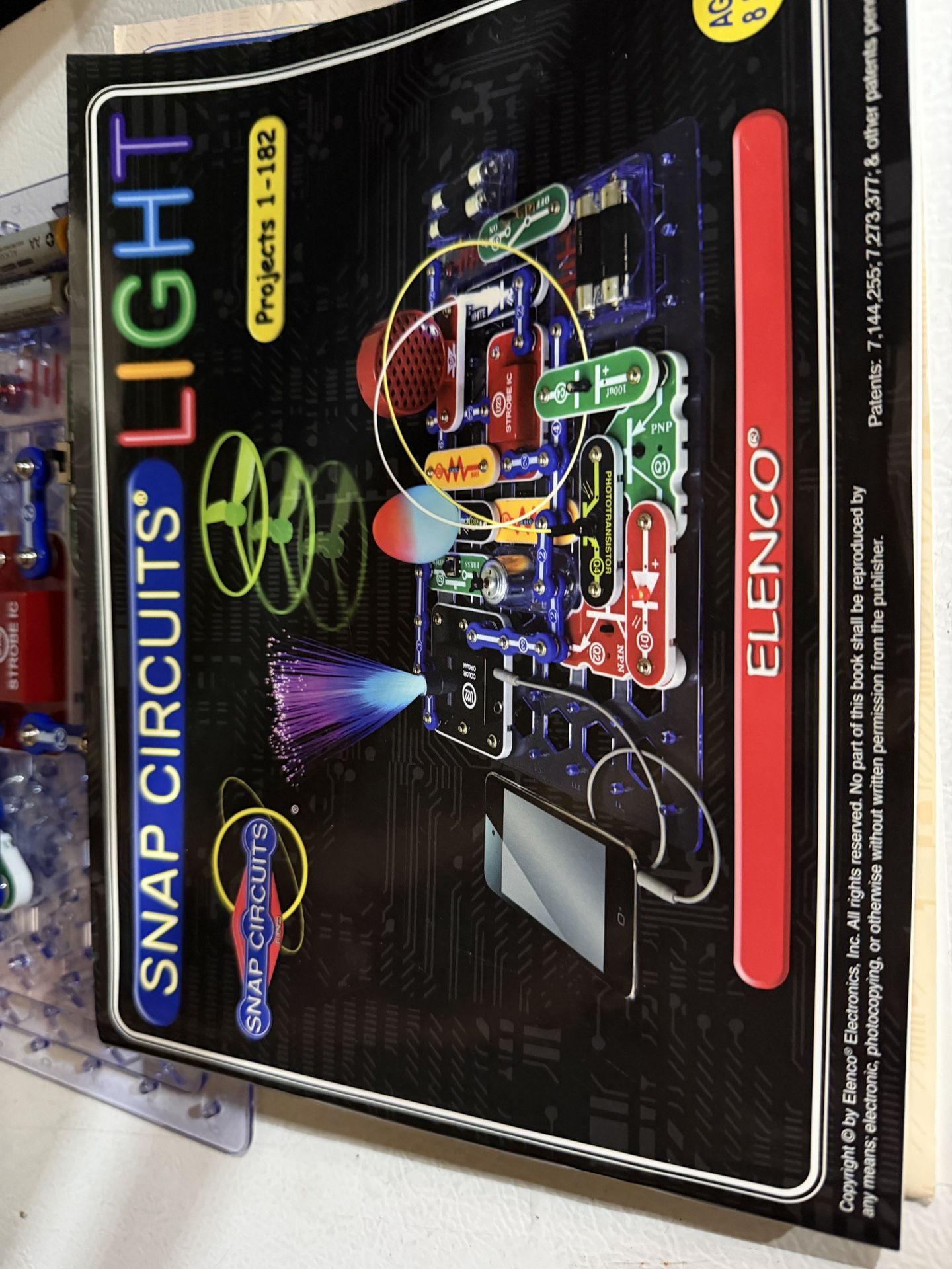 A few different sets of snap circuits and instructions. These are a fun way to learn about electricity .