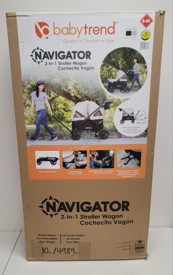 New in box, never opened Navigator 2-in-1 Stroller Wagon. A wagon made for two children. Has 2 modes for the handle - push handle for strolling, pull bar for wagon. Pull handle can be easily tucked away under the carriage. Has parent organizer w/ cup holders and child tray w/ cup holders & center console. Has super large cargo space w/ built-in seating for two. See pics for other features... **FCFS, no holds!** **Located northside Jax near the airport**