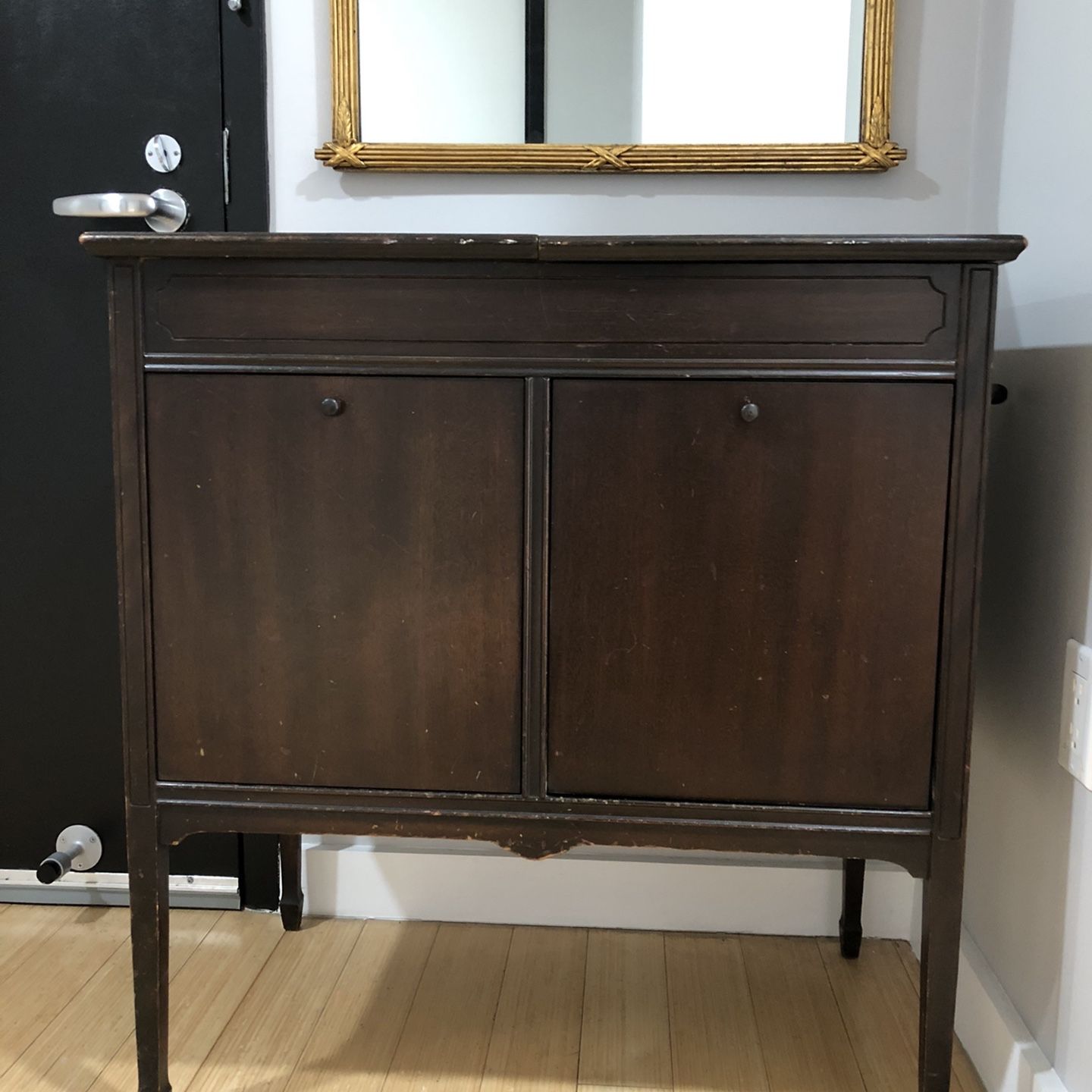 Wood is in good condition. Player works. With hand crank on the side. This is an original antique from the 1940s made by Sonora.