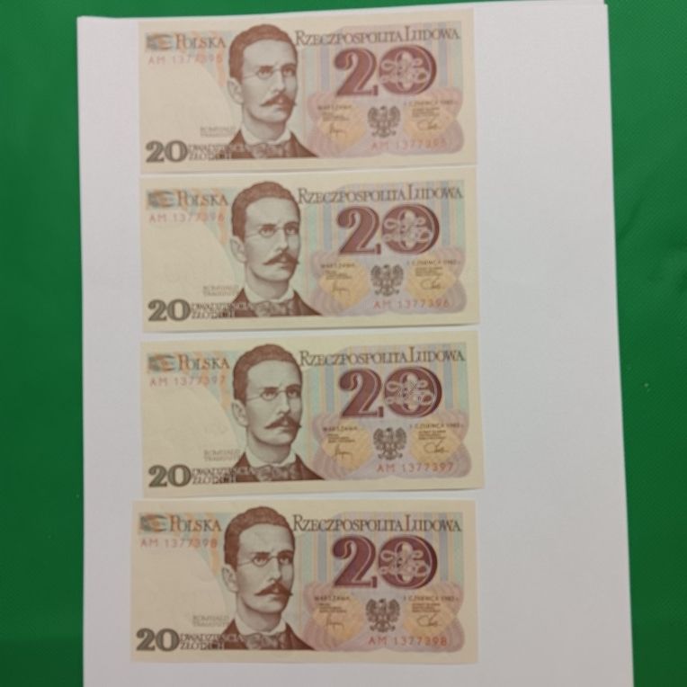 4 X BANKNOTES FROM POLAND 1982 20 ZLOTYCH UNC