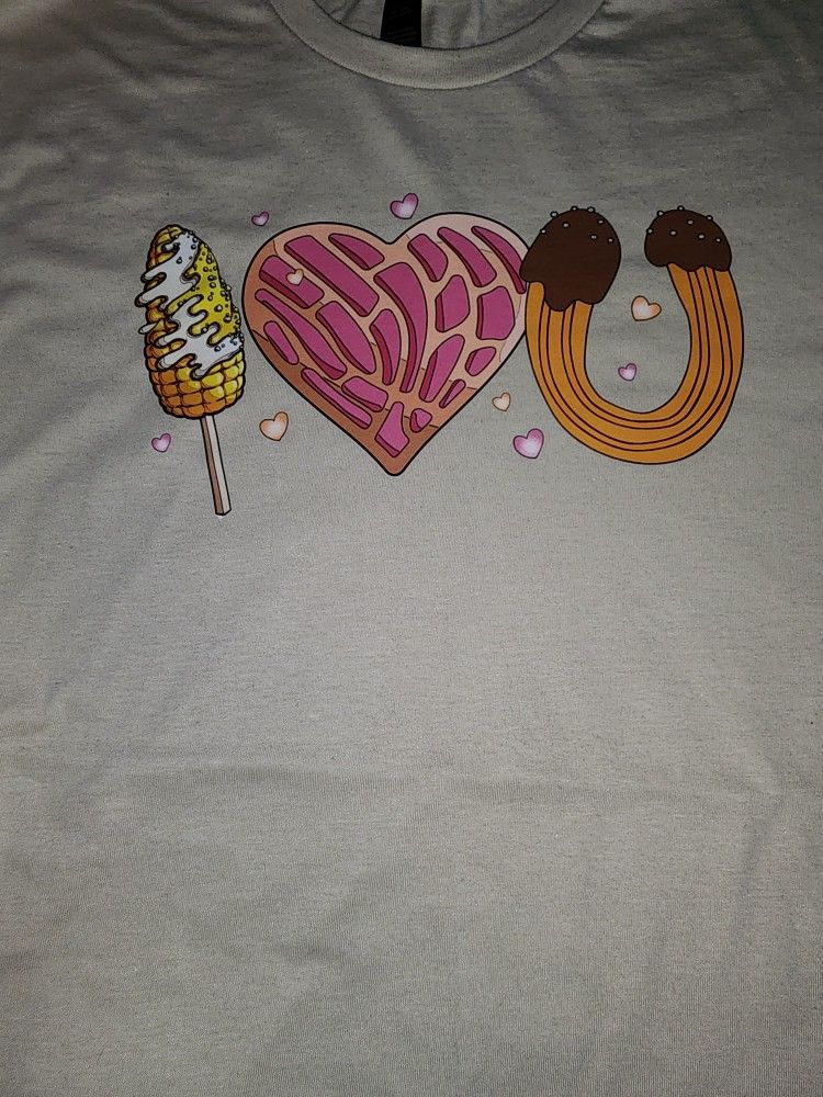 Cute Mexican themed Valentine's Day tee. Elote, concha and churro. Available in multiple shirt colors and sizes. Also available in crewneck sweatshirts ($30) and hoodies ($40). $20 Located in Beaverton