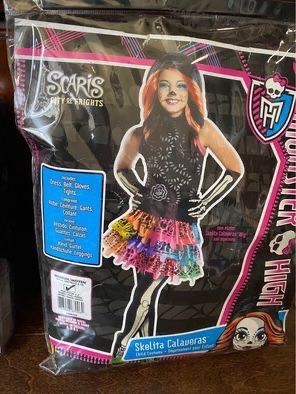EUC Monster High Skeletal Calaveras costume with wig Size 8-10 child