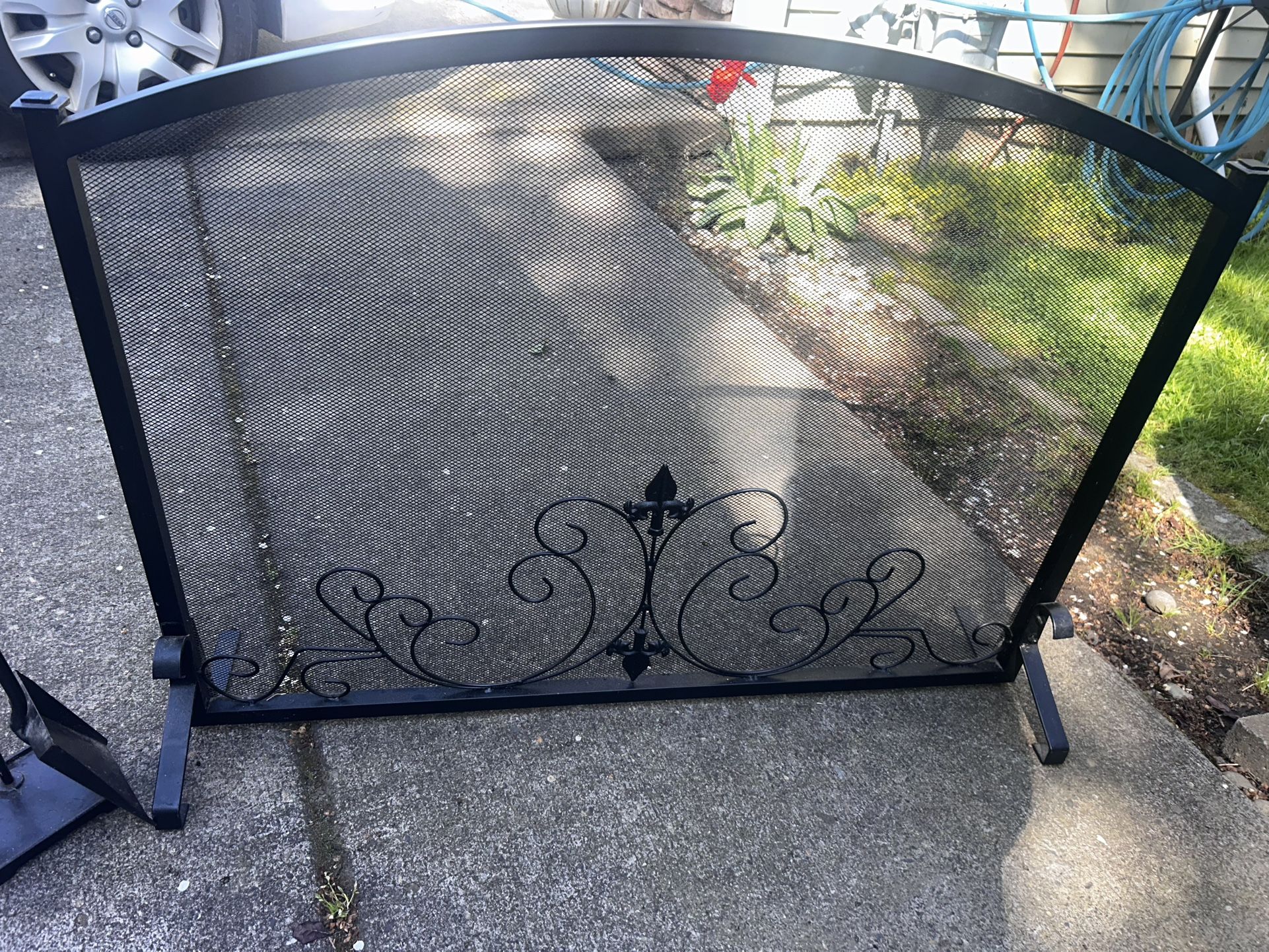 FIREPLACE SCREEN AND BRUSH AND SHOV