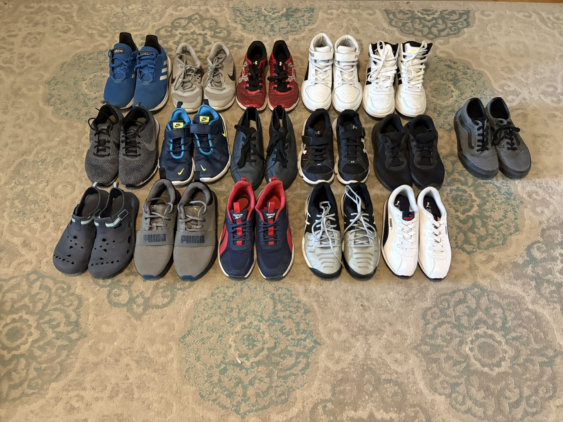 Kids shoes size 3 and 3.5 Adidas, Puma, Nike, Vans, Reebok, Under Armor, Converse Prices range from $5-$20 each pair. Some brands new without tags, others in good condition.