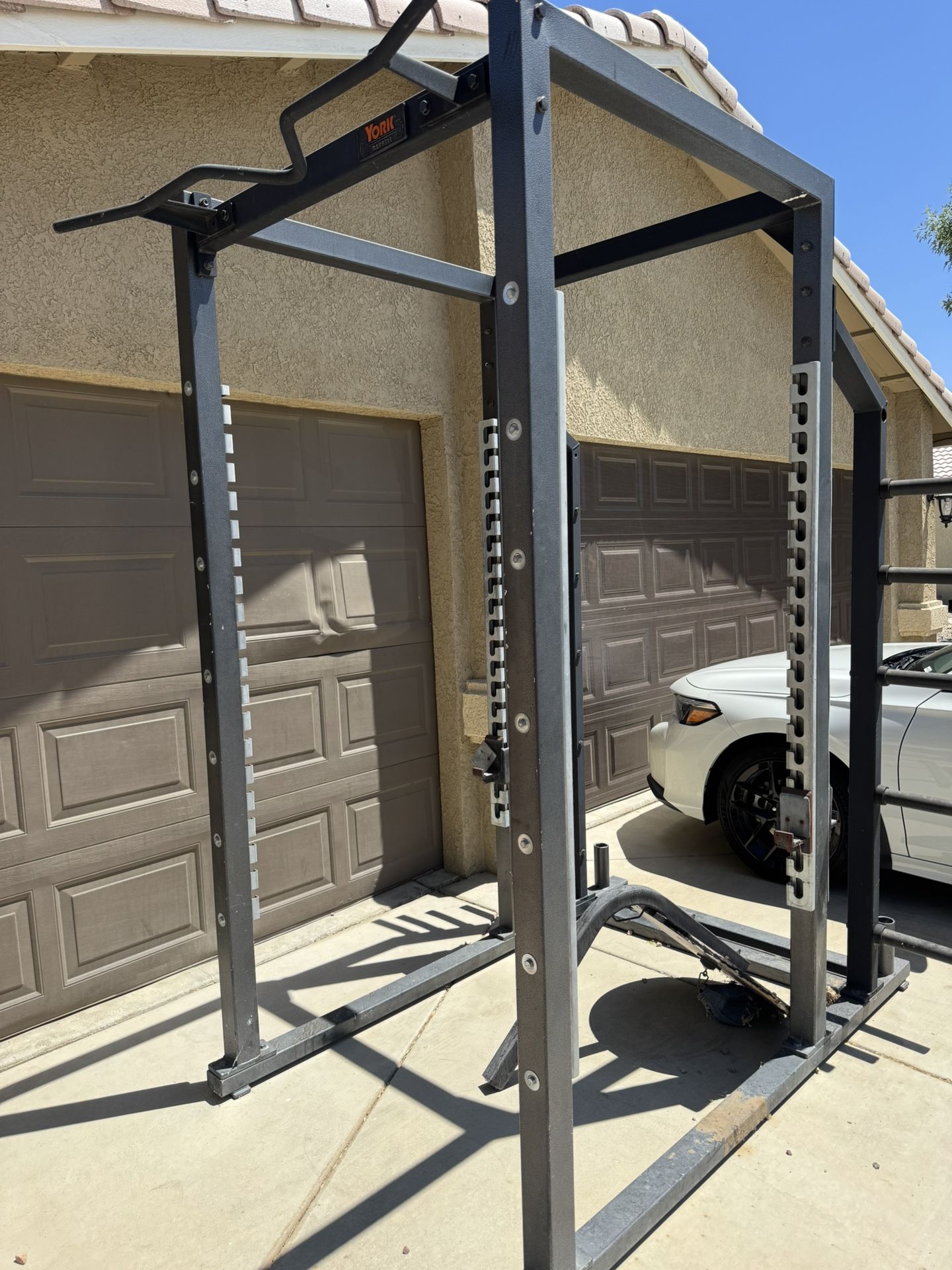 York barbell power rack w/ hook plates. Pick up required.