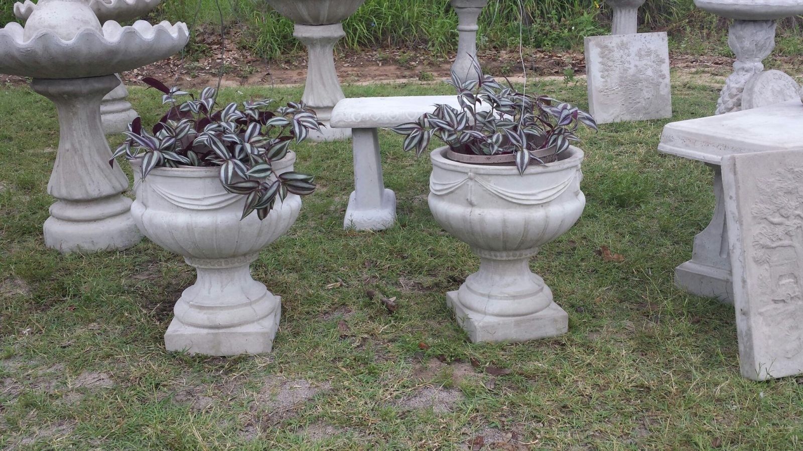 Made of concrete. They measure about 16 inches tall. 99 for both. Delivery available pools, ponds, statuary, concrete art, birdbaths, pottery, vases, landscaping, lighting, tables, benches, appliances, decor, patio, pavers, river rock, flagstone, cement, stone, catawba