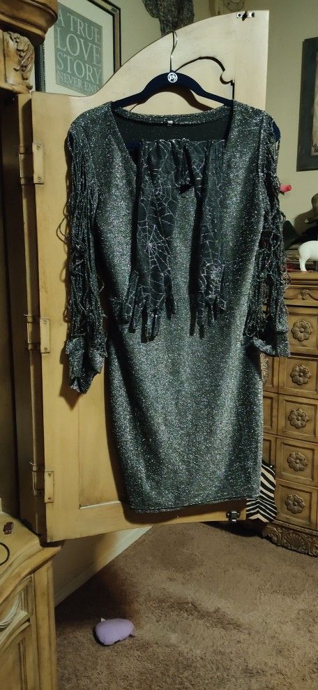 Size 2XL Includes gloves Sparkle the night away for Halloween or a night on the town Condition New Color Black silver sparkle