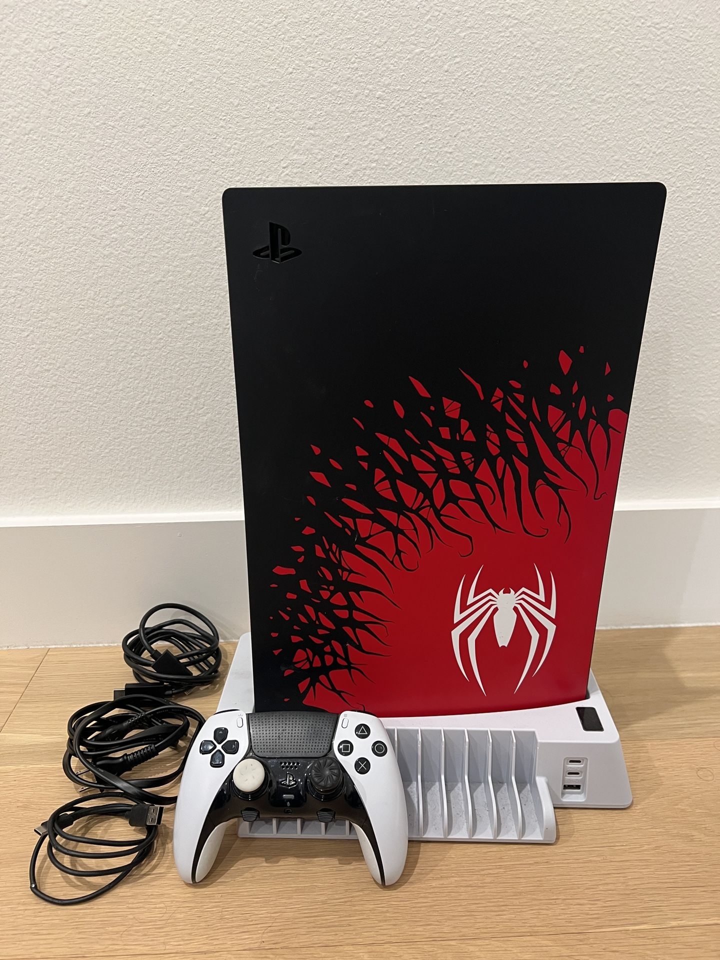 -Used but in great condition - Comes with the Spider Man PS5 Edition Console, Dualsense Edge (pro) Controller, and a Yoges Cooling Stand - Power Cord, HDMI, and USB-C included