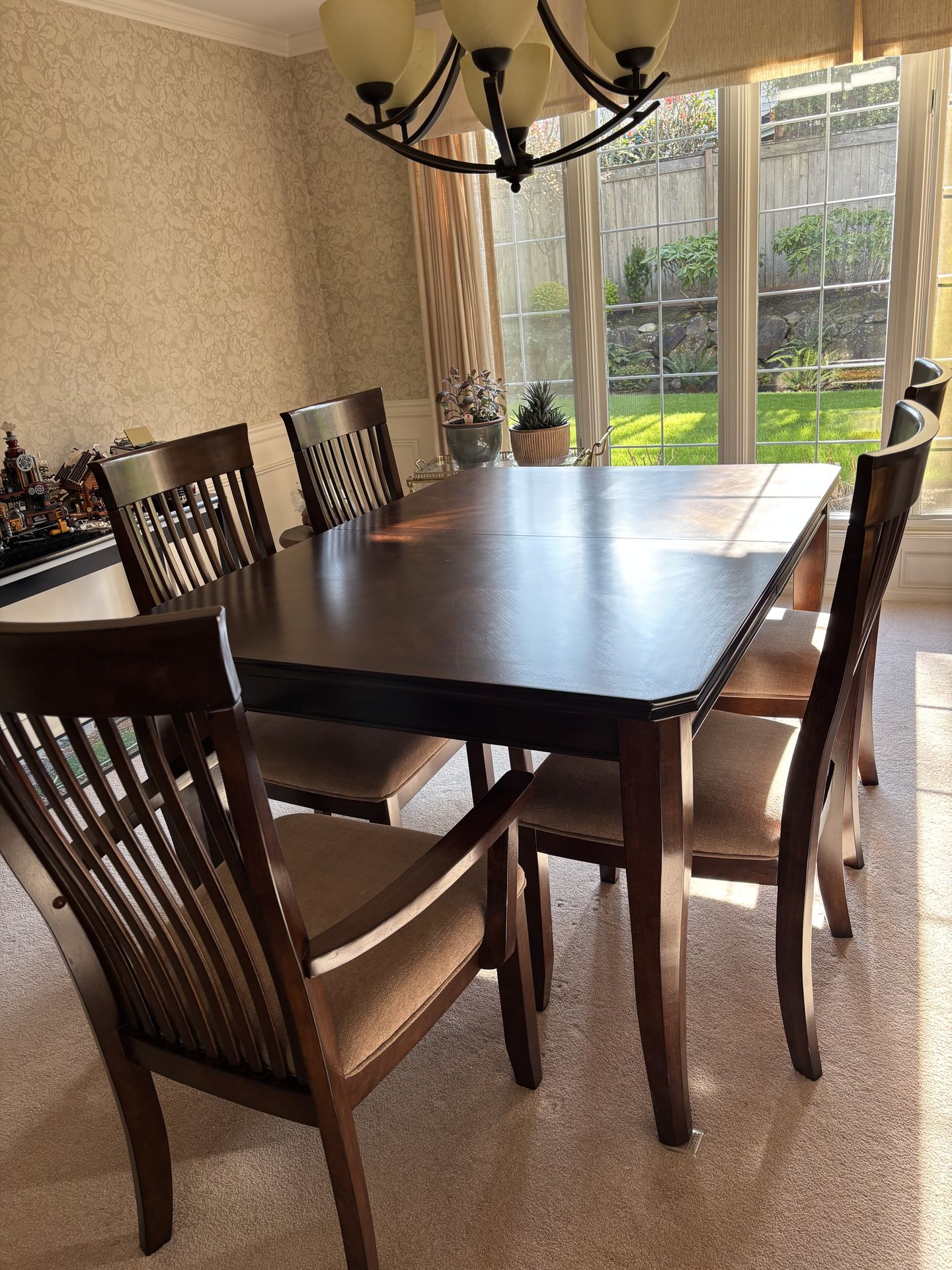 Dining room table w/6 chairs and two leaves. Excellent condition.