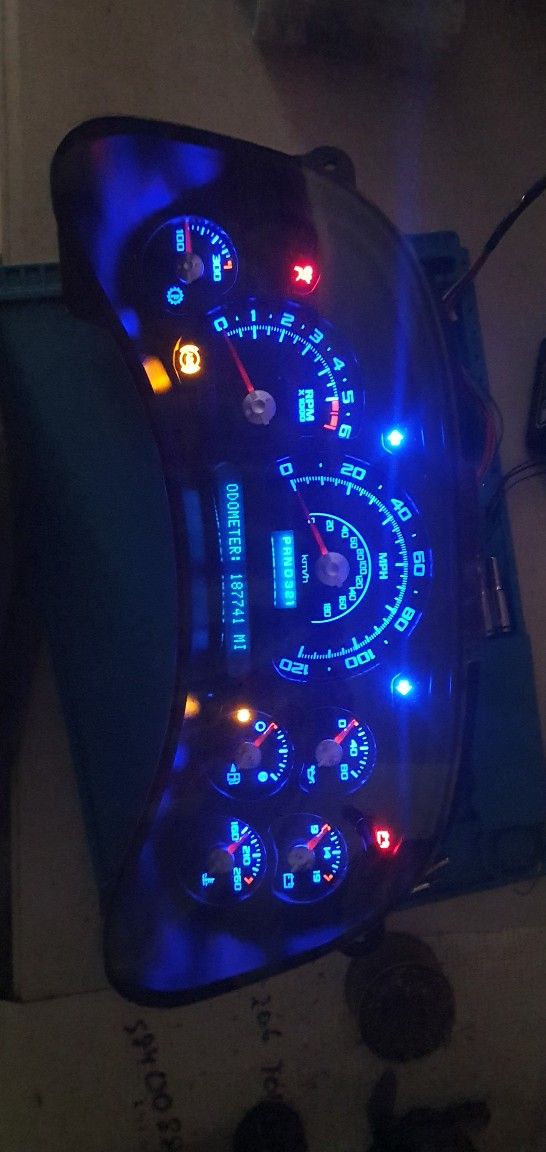 03 06 CADILLAC ESCALADE CLUSTER WITH BLUE LEDS WORKS GREAT NO ISSUES WILL FIT CHEVY AND GMC TRUCKS AND SUVS